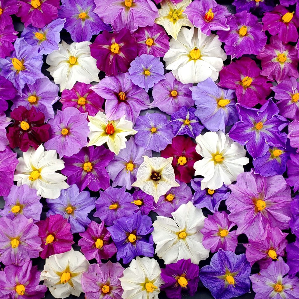 We’re celebrating with potato flowers instead of fireworks: Each flower in this picture is from a different variety.