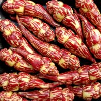 Four important tuber crops were developed in the Andes: potato, oca, ulluco, and mashua (Tropaeolum tuberosum). Mashua produces tubers that range commonly from 2 to 10 inches in length and can yield very large quantities. Although not as colorful as oca or ulluco, the tubers are still quite beautiful. All parts of the plant are edible, raw or cooked, but very few people like the flavor of raw mashua tubers. Fully cooked, they are somewhat similar to turnip. The leaves taste like spicy mustard greens and the plants are well worth growing as a leaf crop even if you don’t like the tubers. Mashua is somewhat tricky to grow, as it does not do well in temperatures that much exceed 75 degrees and needs a frost free growing season through October.
