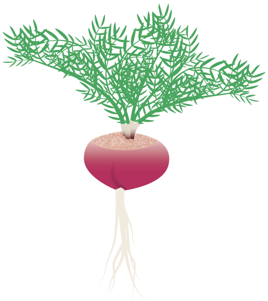 The largest roots are often fibrous. The best tasting, least fibrous roots appear to be those that range from 1 to 2 inches (2.5 to 5 cm) in diameter – about the same size as salad radishes.