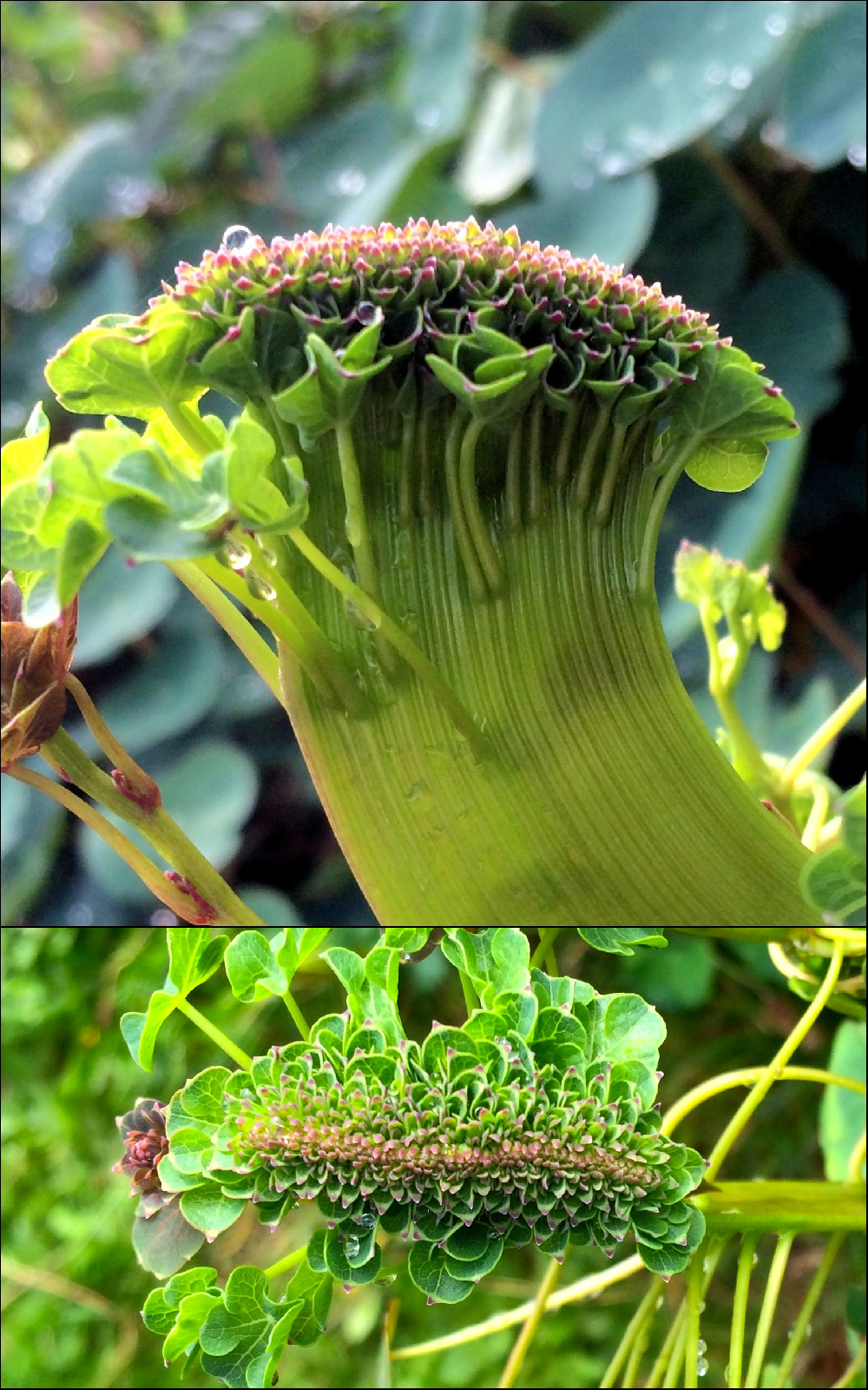 Mashua frequently demonstrates fasciation, which can be beautiful, but also typically lowers yield. the cause is unknown, but fasciation is sometimes an indication of virus infection. Another common defect is flowers with dual nectary spurs. this may be genetic and appears to cause no problems with seed formation.Breeding