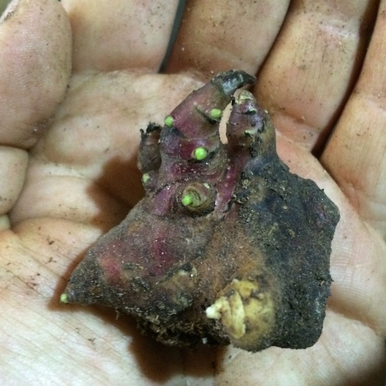 If you have purchased bare rhizome, check condition on receipt. If they are firm and have not sprouted, they don’t require any immediate care. More commonly, you will find that they have become a bit rubbery and may have sprouted while in transit. They can look pretty ugly if they have spent a long time in the mail, but don’t panic. Soak the propagules in room temperature water for about 8 hours (they should become firm again), then pot them in any potting soil with no added fertilizers.