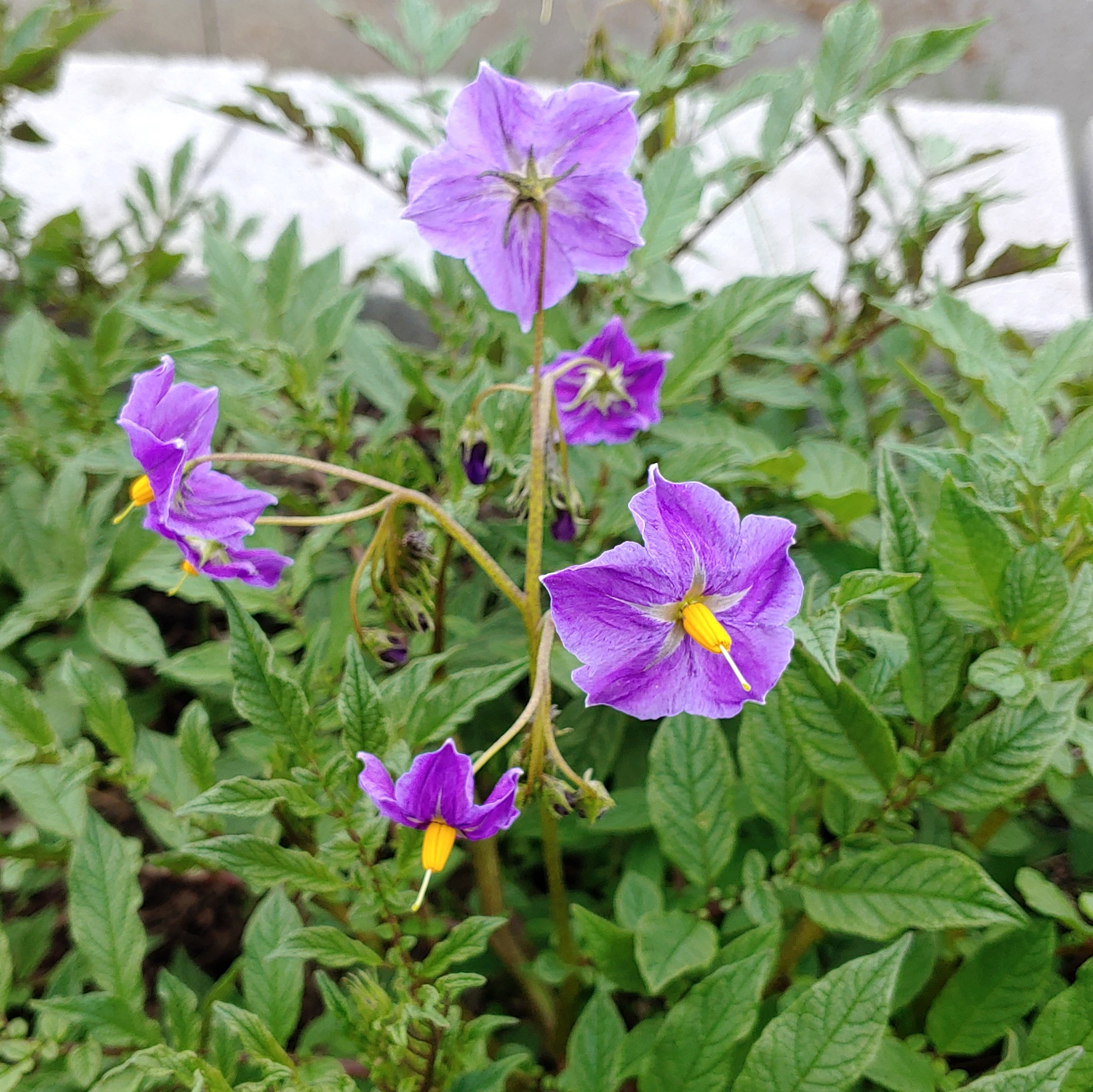 The plants are very obviously different in form from any domesticated potato that I have seen. They are even more different than the accessions of diploid S. acroscopicum that I have grown. That makes this accession a bit of a mystery. The most obvious explanation, and the one that I initially accepted, is that this is a tetraploid accession and the differences in morphology are simply due to increased ploidy. This explanation became unsatisfying with further experience and research.