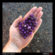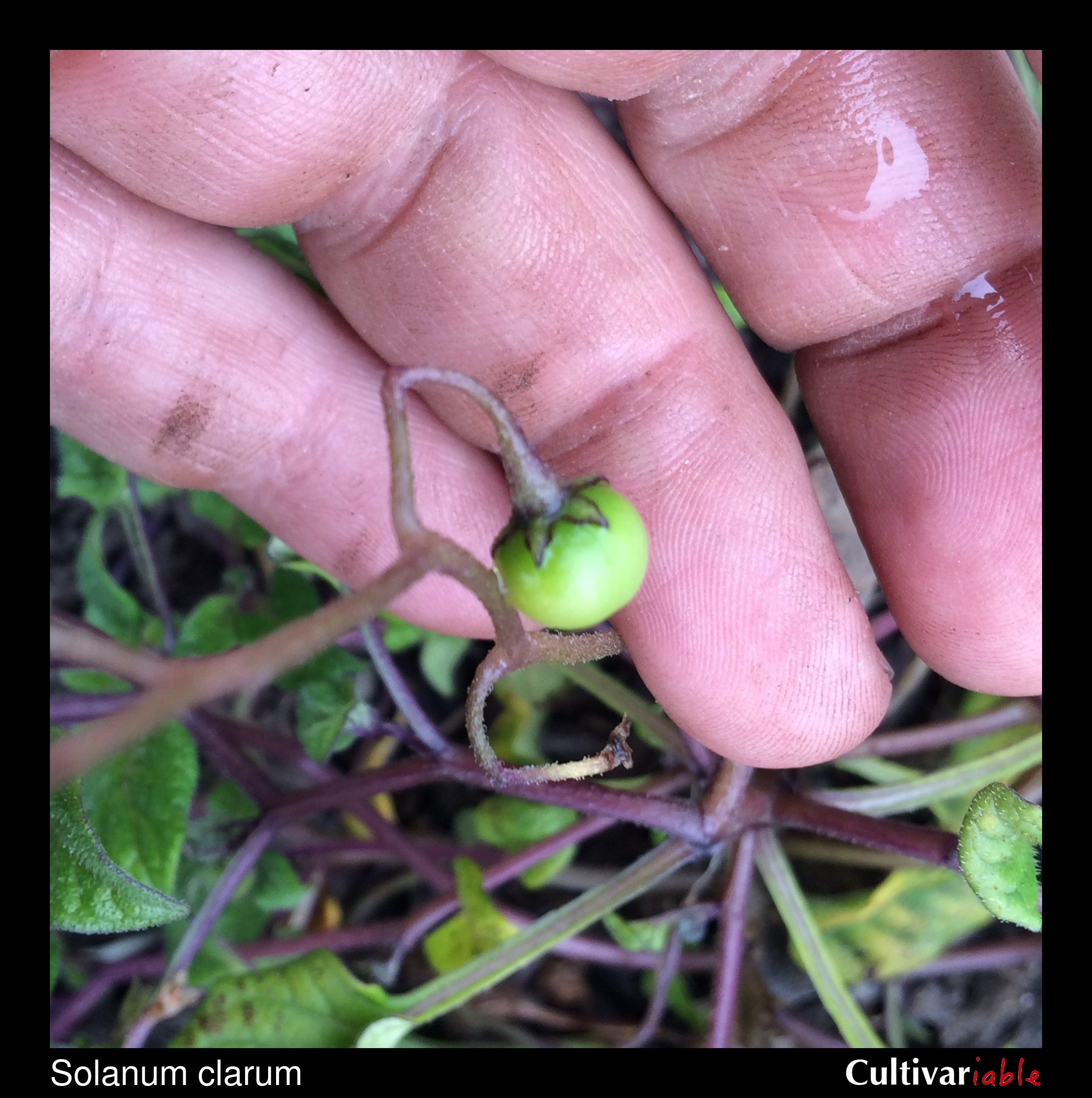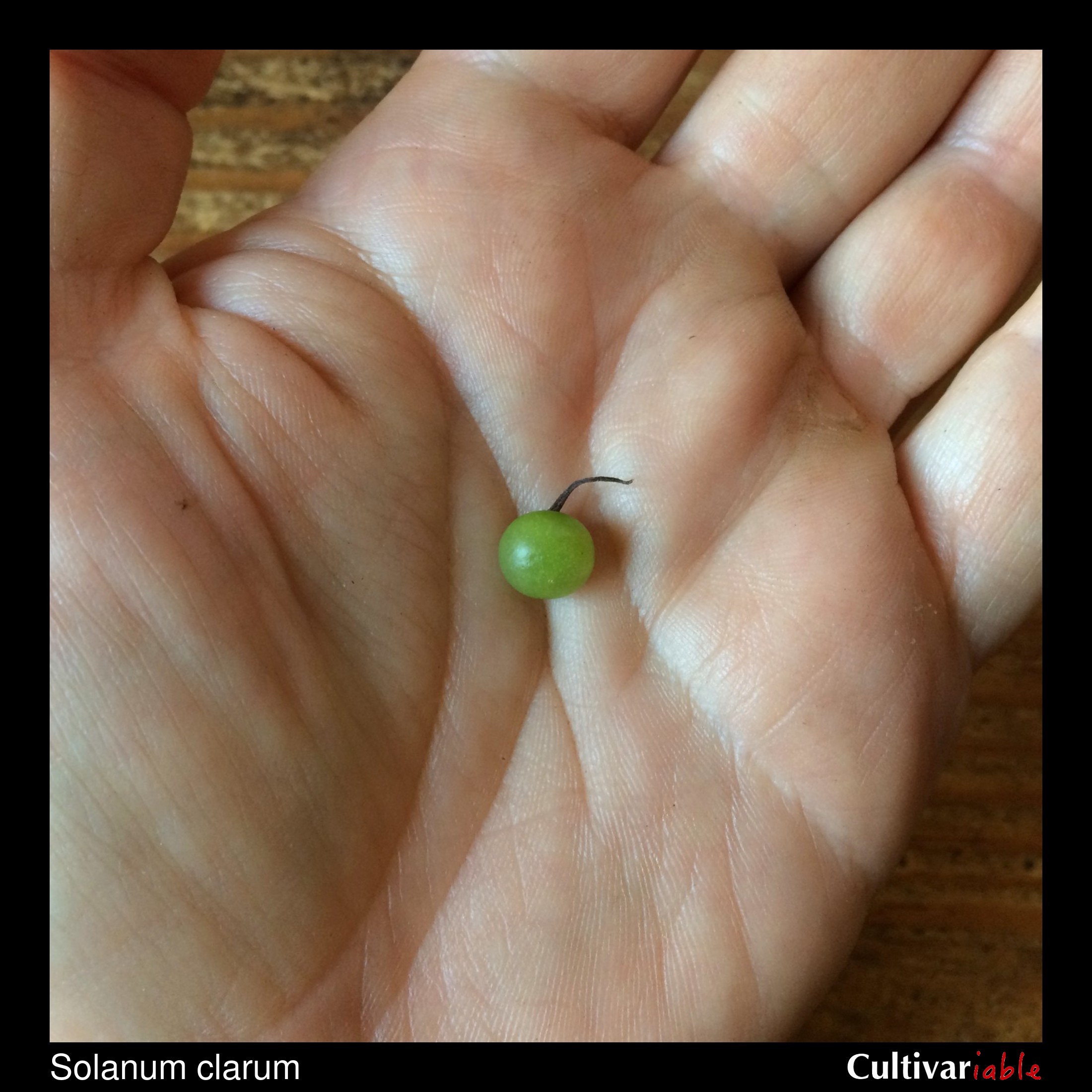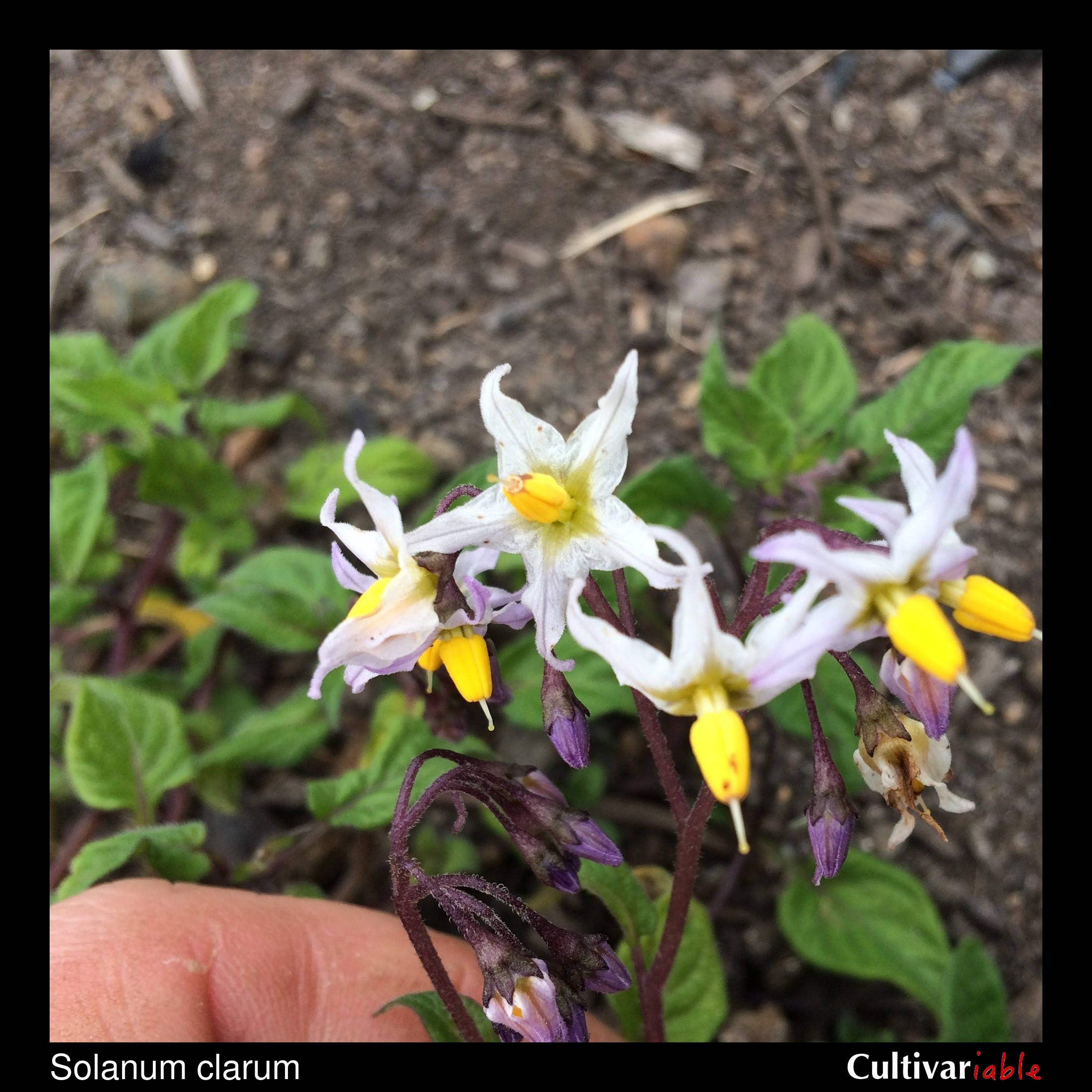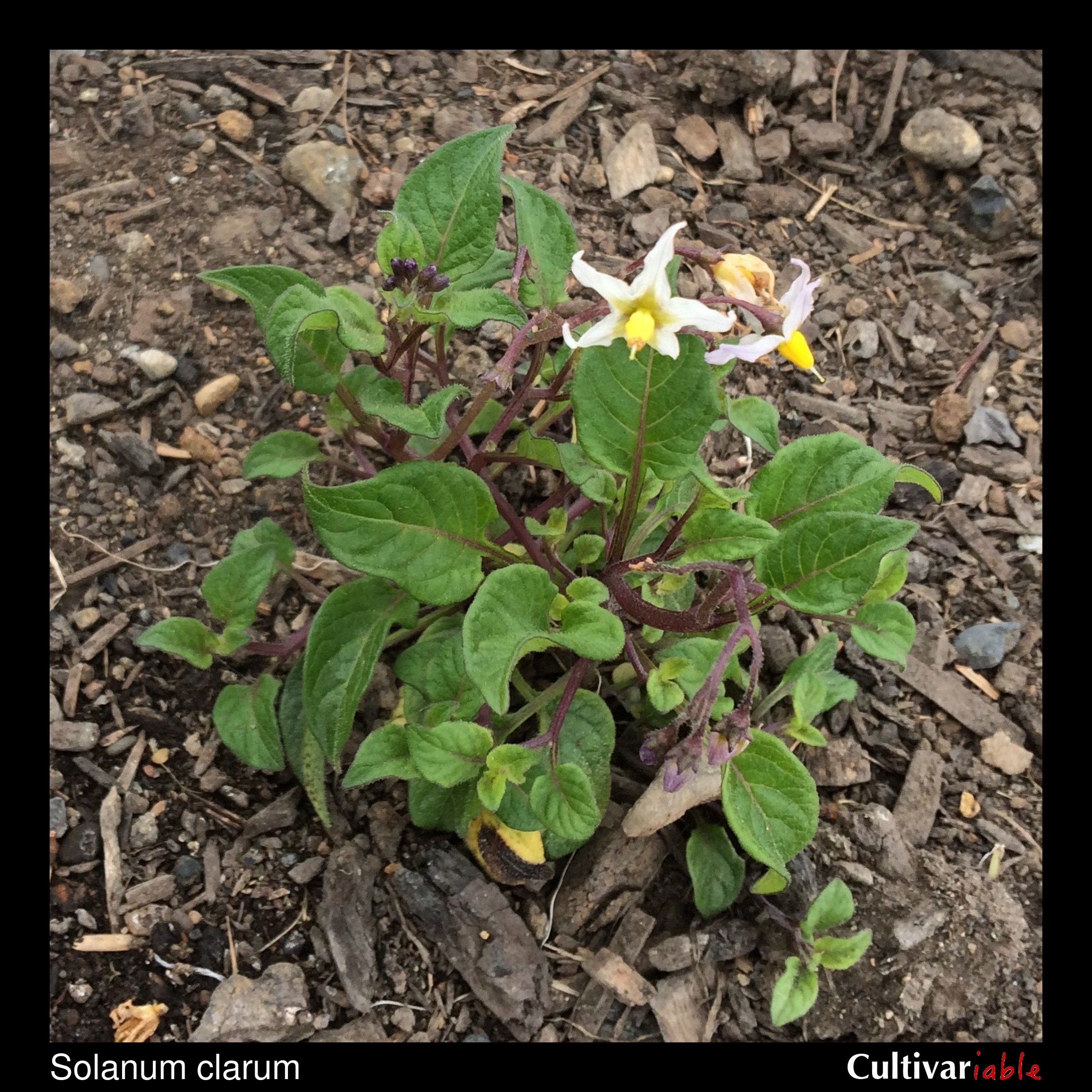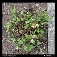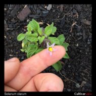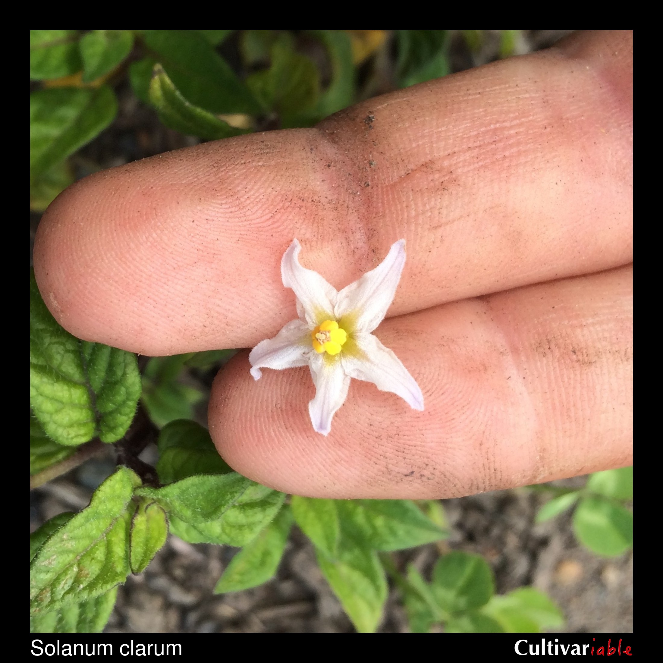 Solanum clarum is a species primarily of northwest Guatemala, reaching slightly into Mexico. Plants roughly one half to one foot tall. Leaves are simple, unusual for a potato. Tubers smaller than an inch in diameter and white to bluish. Grows in colonies as an understory plant about 10,200 to 12,500 (3100 to 3800 m) (Correll 1962).