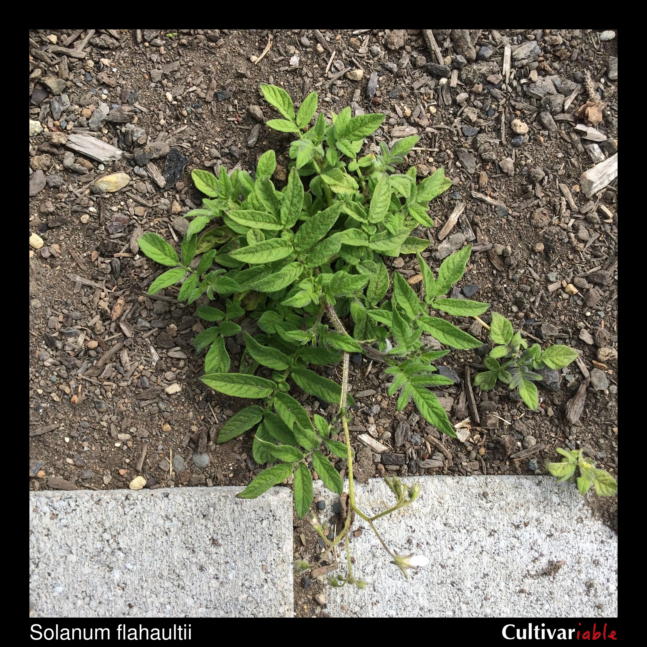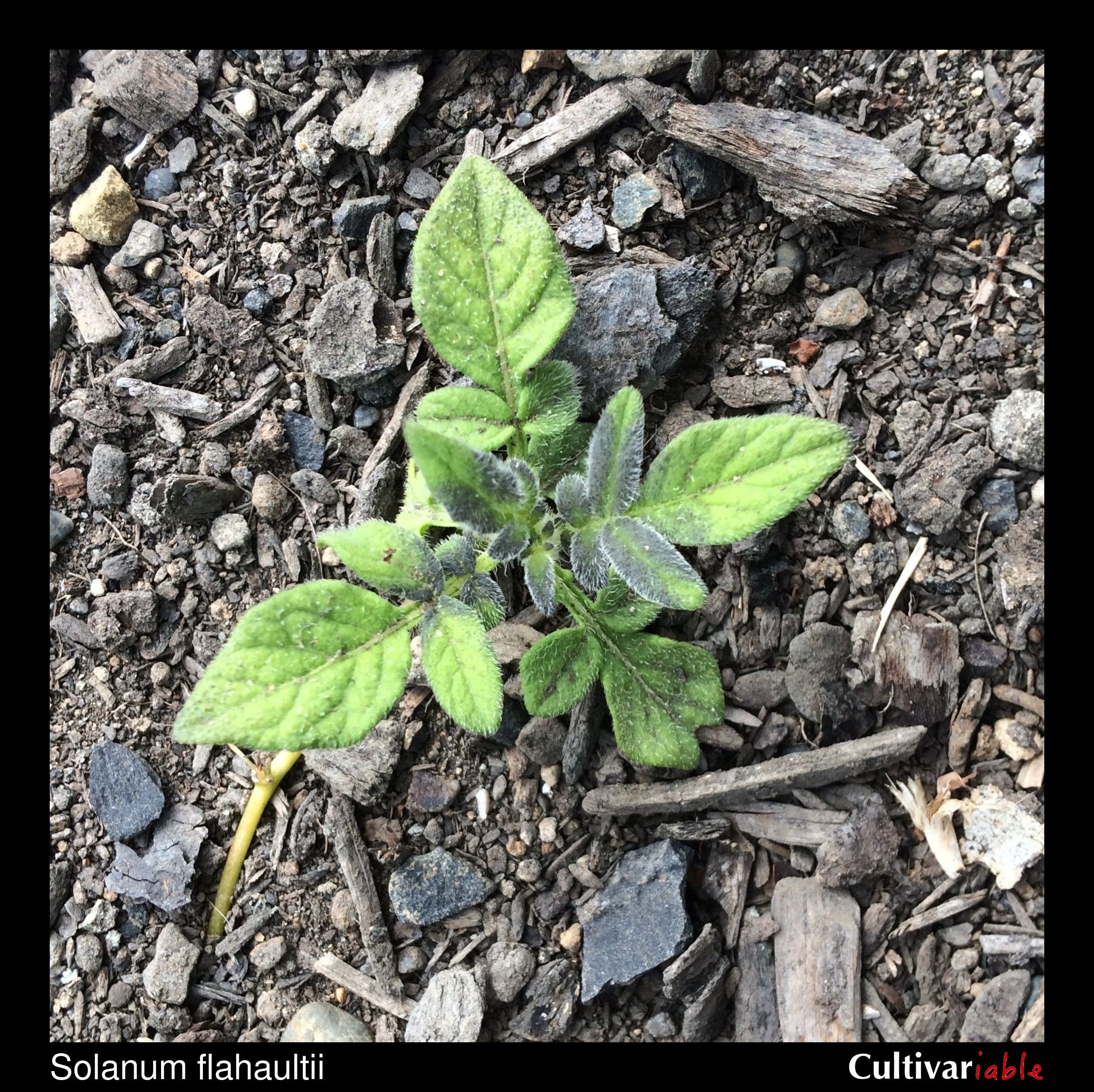 Solanum flahaultii is a Colombian species, possibly reaching slightly into Venezuela. Plants reach about 18 inches tall. Flowers purple or violet. Conical berries. Tubers small and whitish. Found in rich soils at elevations of 8,850 to 12,000 feet (2700 to 3650 m).
