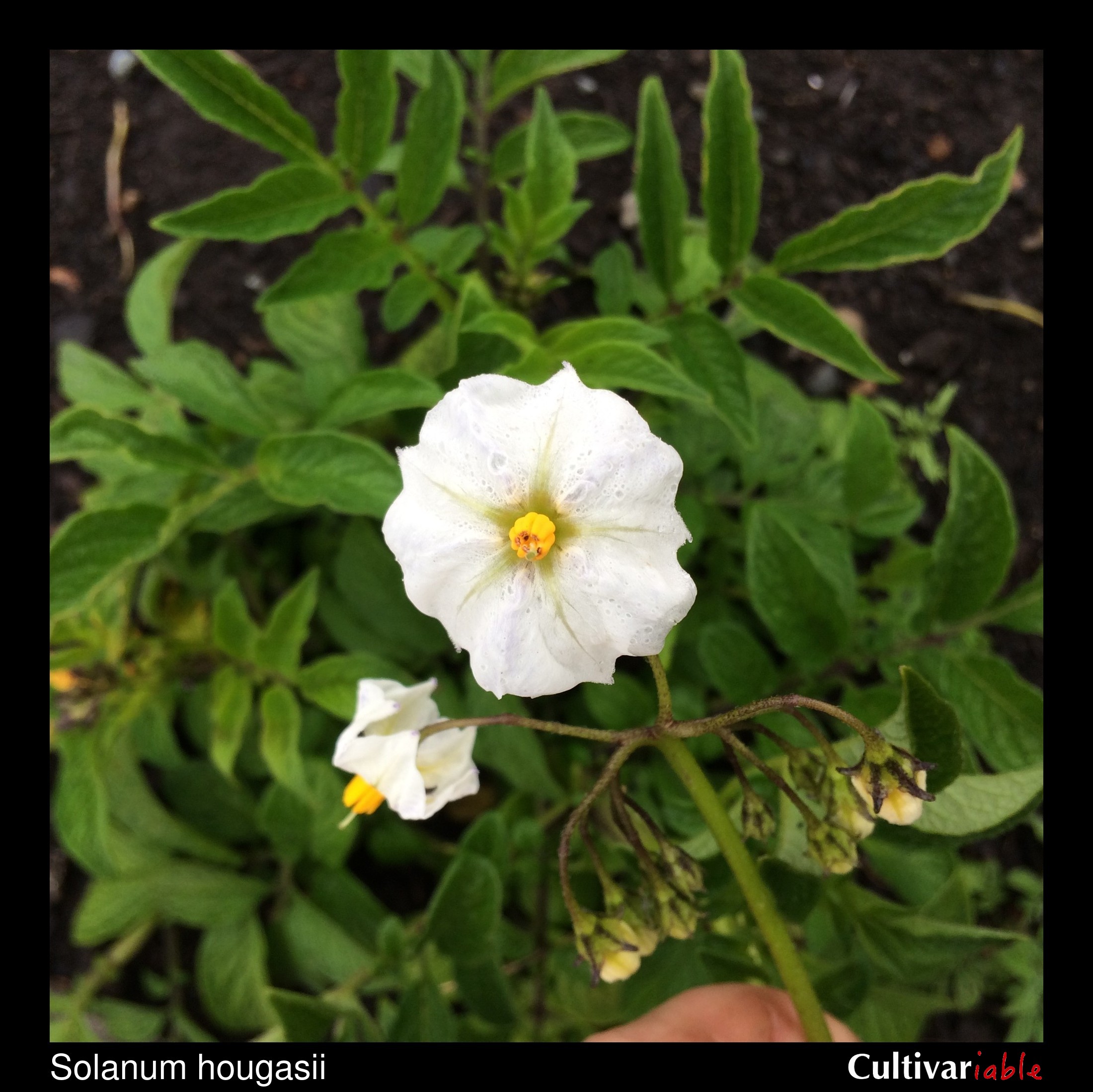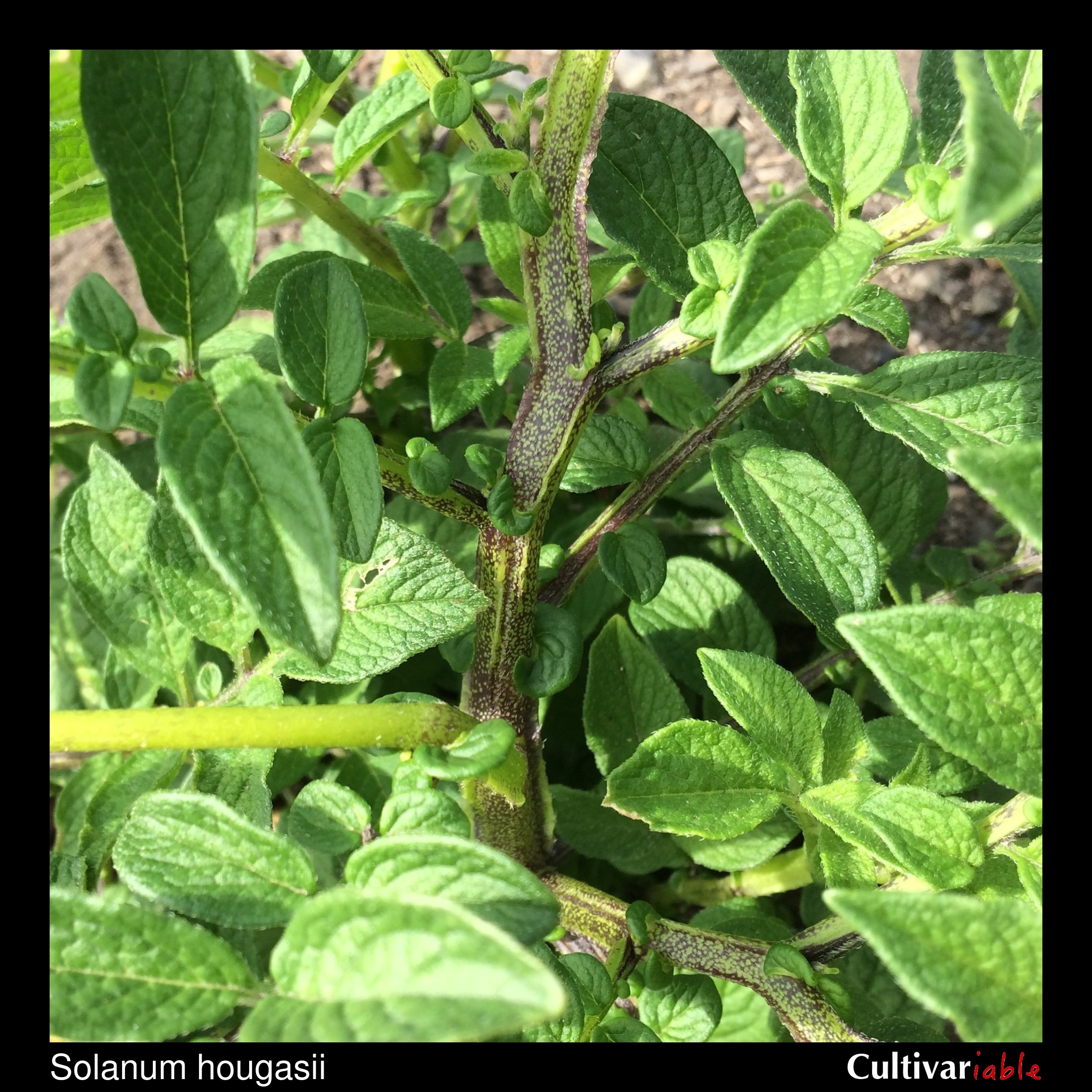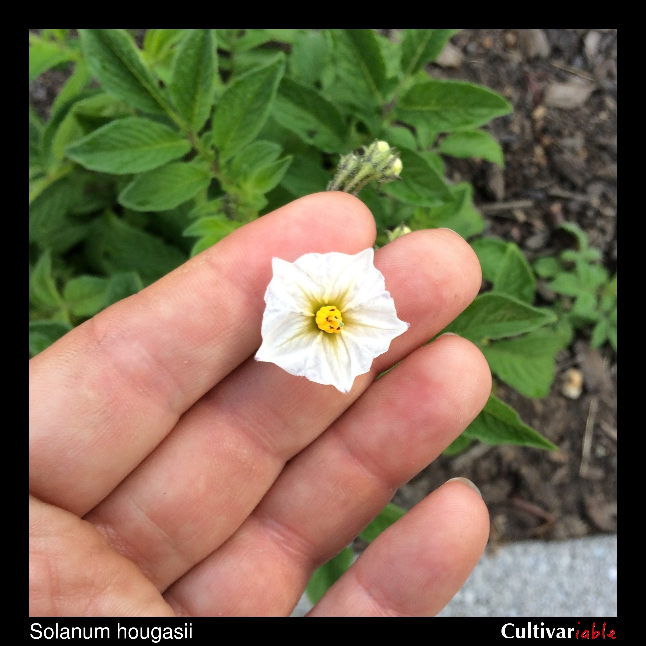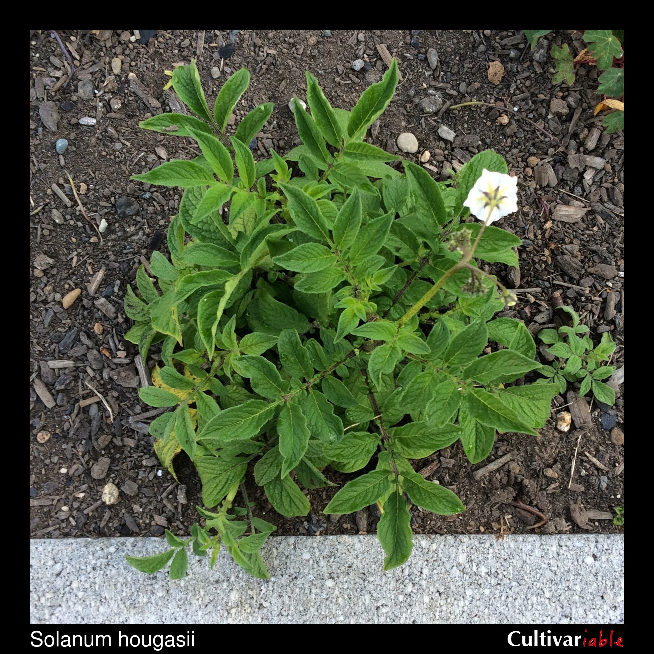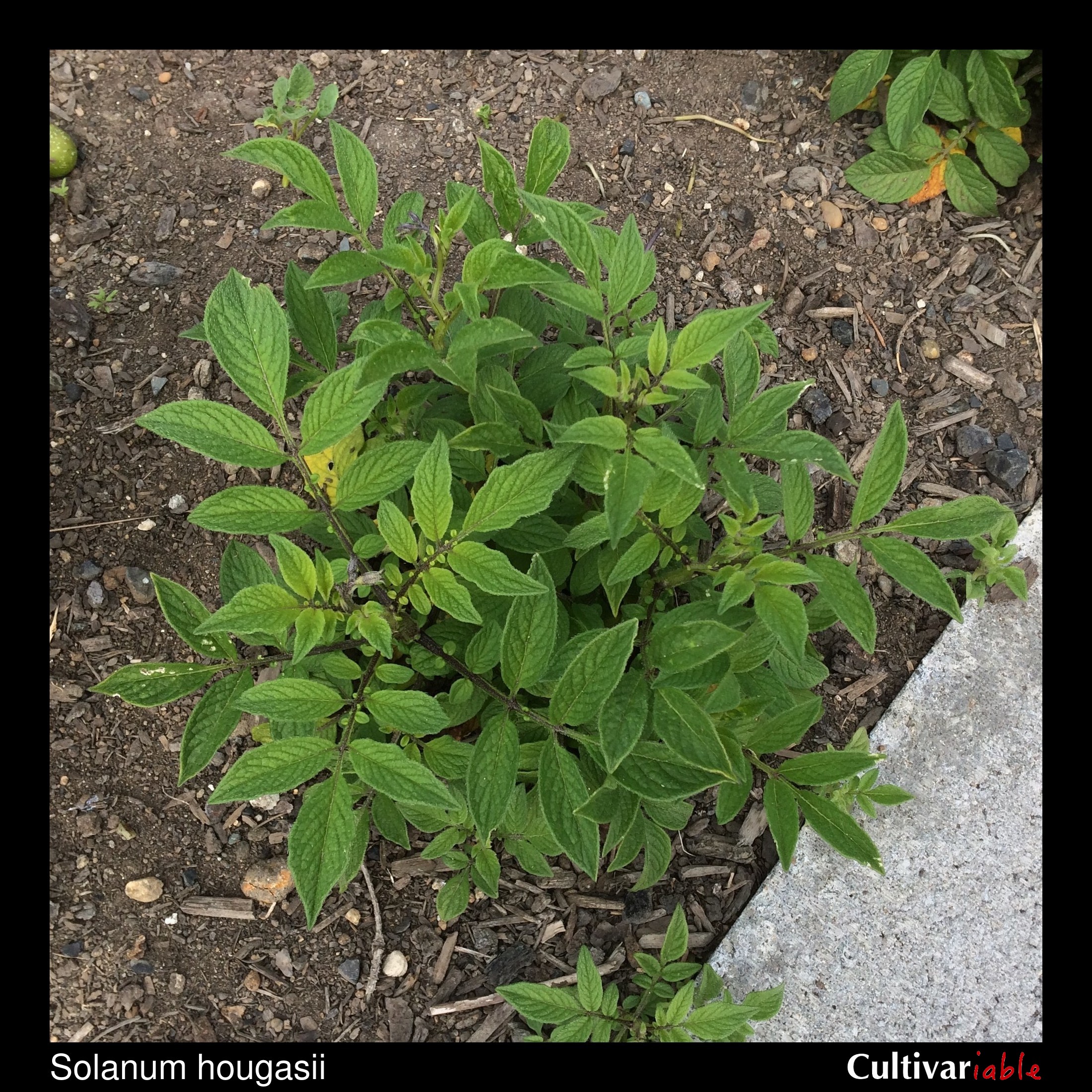 Solanum hougasii is a species of limited distribution in southwest Mexico. Plants reach a little over two feet tall. White flowers. Round berries.