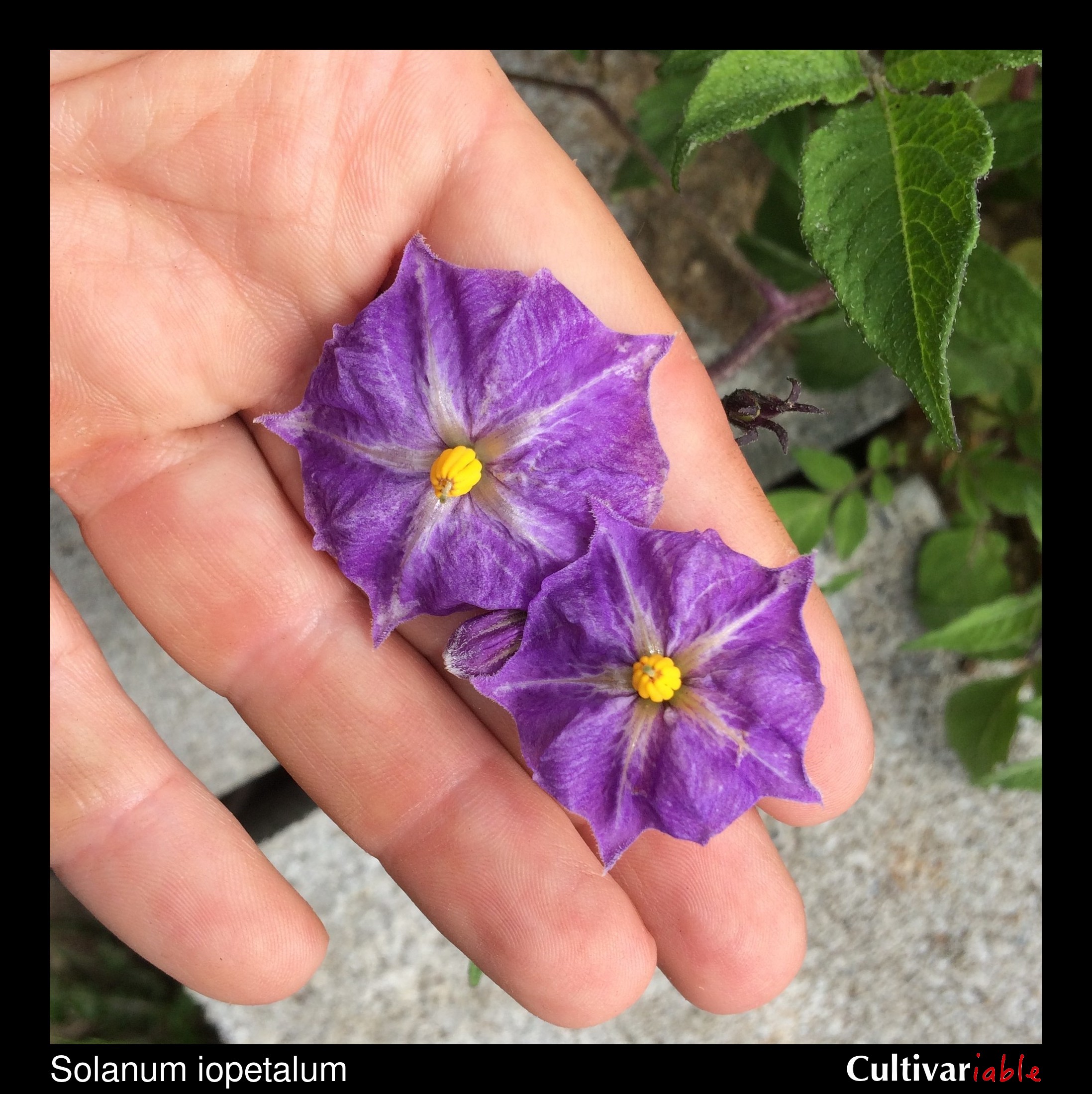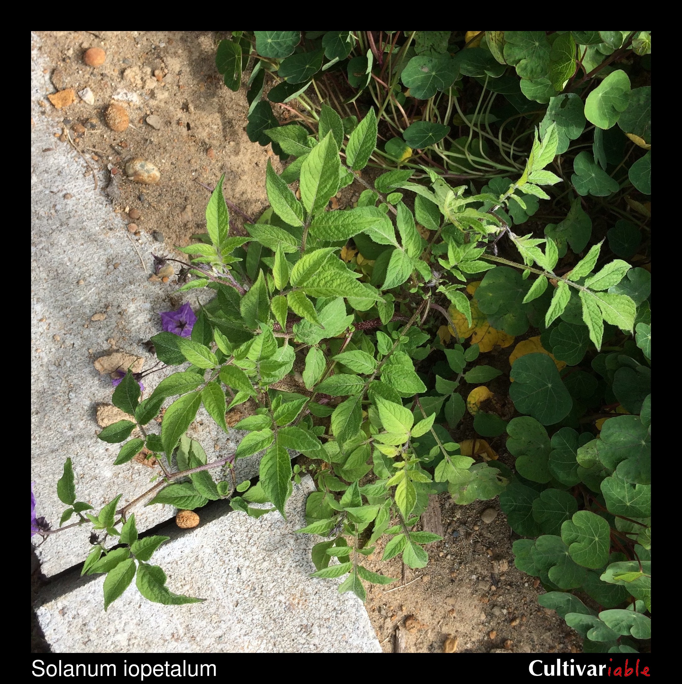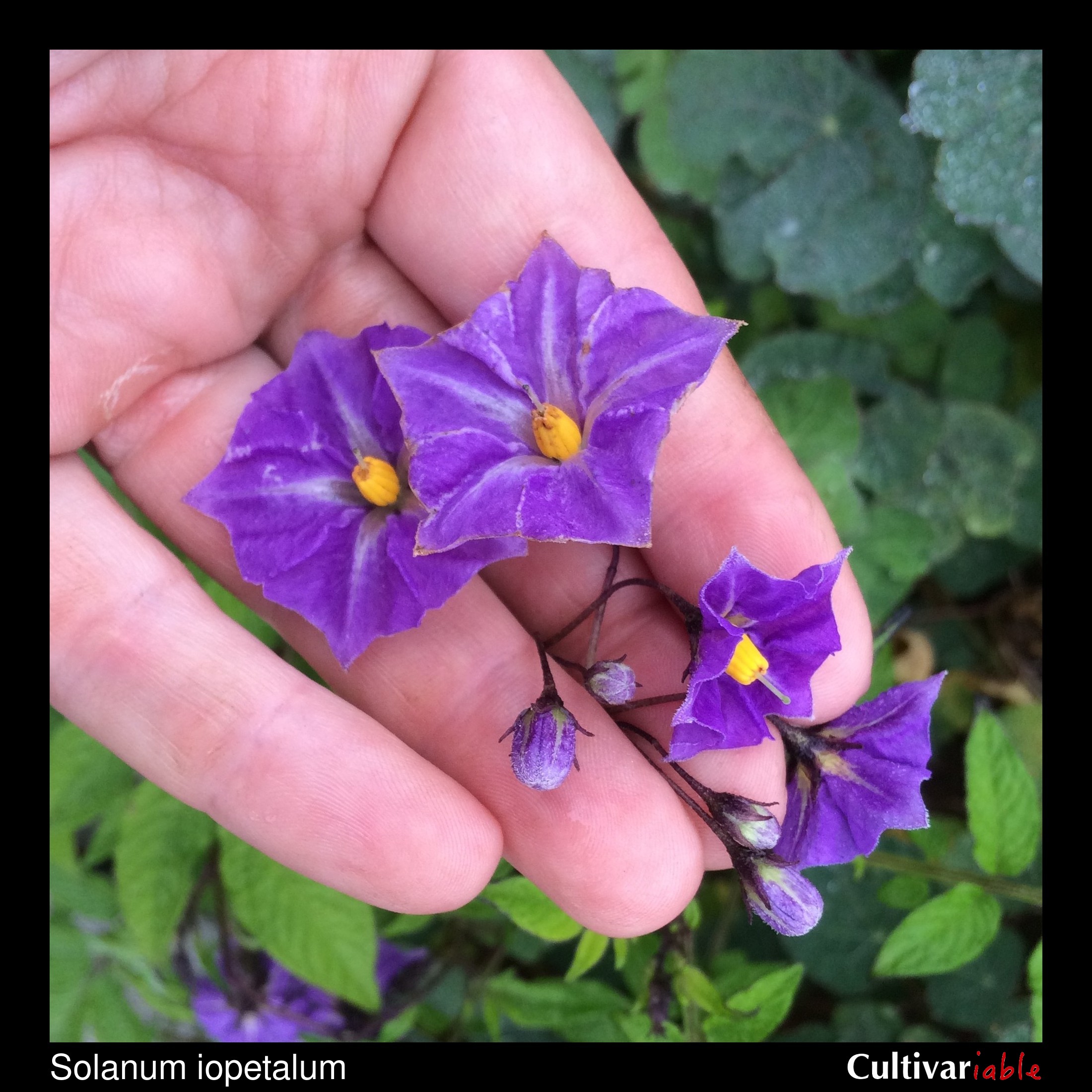 Solanum iopetalum is a widespread species from central to southern Mexico. Plants roughly one to two feet tall. Flowers white to violet. Berries conical.