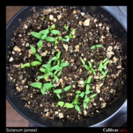 Solanum jamesii grows in the high desert of the southwest United States and northern Mexico. It is adapted to dry conditions, growing in sandy soils, with hot days and cold nights. In the wild, S. jamesii usually sprouts during the rainy season in July and August (Kinder 2017). Plants flower and fruit from June to October (Spooner 2004). In cultivation, with irrigation, it can be started much earlier in the year, but I have found that flowering is poor here from an April sowing. While the plants emerge and grow well, they produce few flowers. In 2020, I planted in late June and the plants flowered more abundantly in our slightly warmer summer weather.