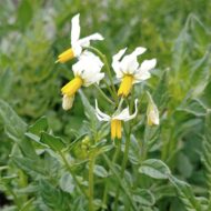 Slow and low germination (14%). Foliage green. Plants mid height, bushy. Some early flowering. Low late blight. Low early blight.
