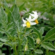 Solanum jamesii, sometimes known as the “Four Corners potato,” is a wild potato of the United States and northern Mexico, with a couple of separate populations in central Mexico. It is the only wild species with a distribution primarily in the United States, where it is found mostly in New Mexico and Arizona, but also reaches slightly into Colorado, Utah, and Texas at elevations above 5000 feet. Plants are small, reaching about 6 to 15 inches in the wild, but sometimes taller under cultivation. Foliage ranges in color from light green to blue-green. Flowers are white, stellate, with yellow anthers. Berries are most commonly light green with light blue speckles or vertical stripes, but can range in color from pale green to dark purple/black.