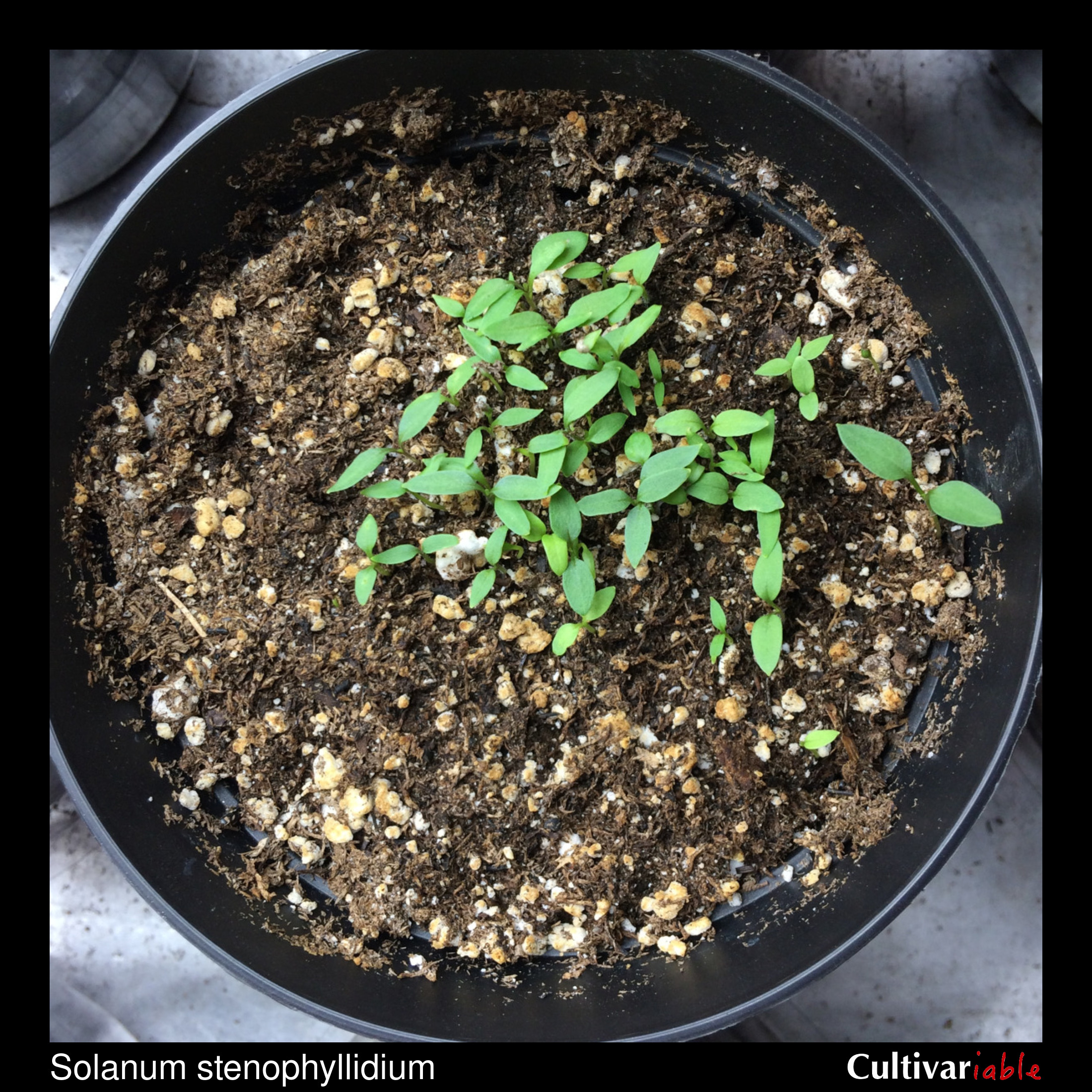 Solanum stenophyllidium is a Mexican species, ranging from central Mexico north almost to the US border.  Highly variable in size and form.  Plants range about 9 to 27 inches tall.  Long, thin leaves, similar to many of the Mexican dryland species.