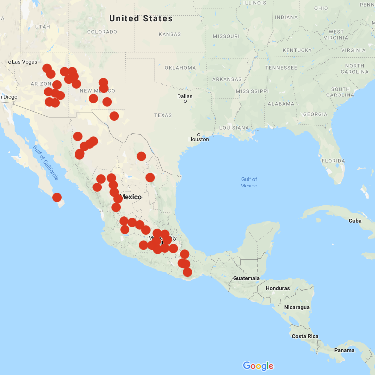 Solanum stoloniferum is a widespread and highly variable species, ranging in height from about 7 to 24 inches, ranging from the southwest US to southern Mexico. In the United States, it is found primarily in New Mexico and Arizona and reaches slightly into southwest Texas (Spooner 2004). It is one of only two wild potato species found in the United States and the only wild potato species found in Baja California.