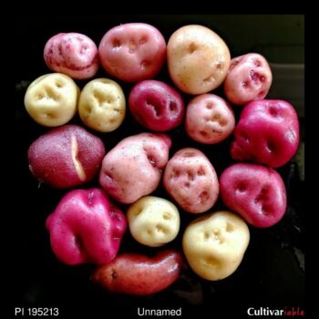 TPS. Mostly compressed, some obovate or elliptic. Mostly reds and whites with white flesh. A few with light yellow flesh. Skin smooth. Eyes moderately deep. Very short stolons. Abundant flowering and berrying. Mostly long day.