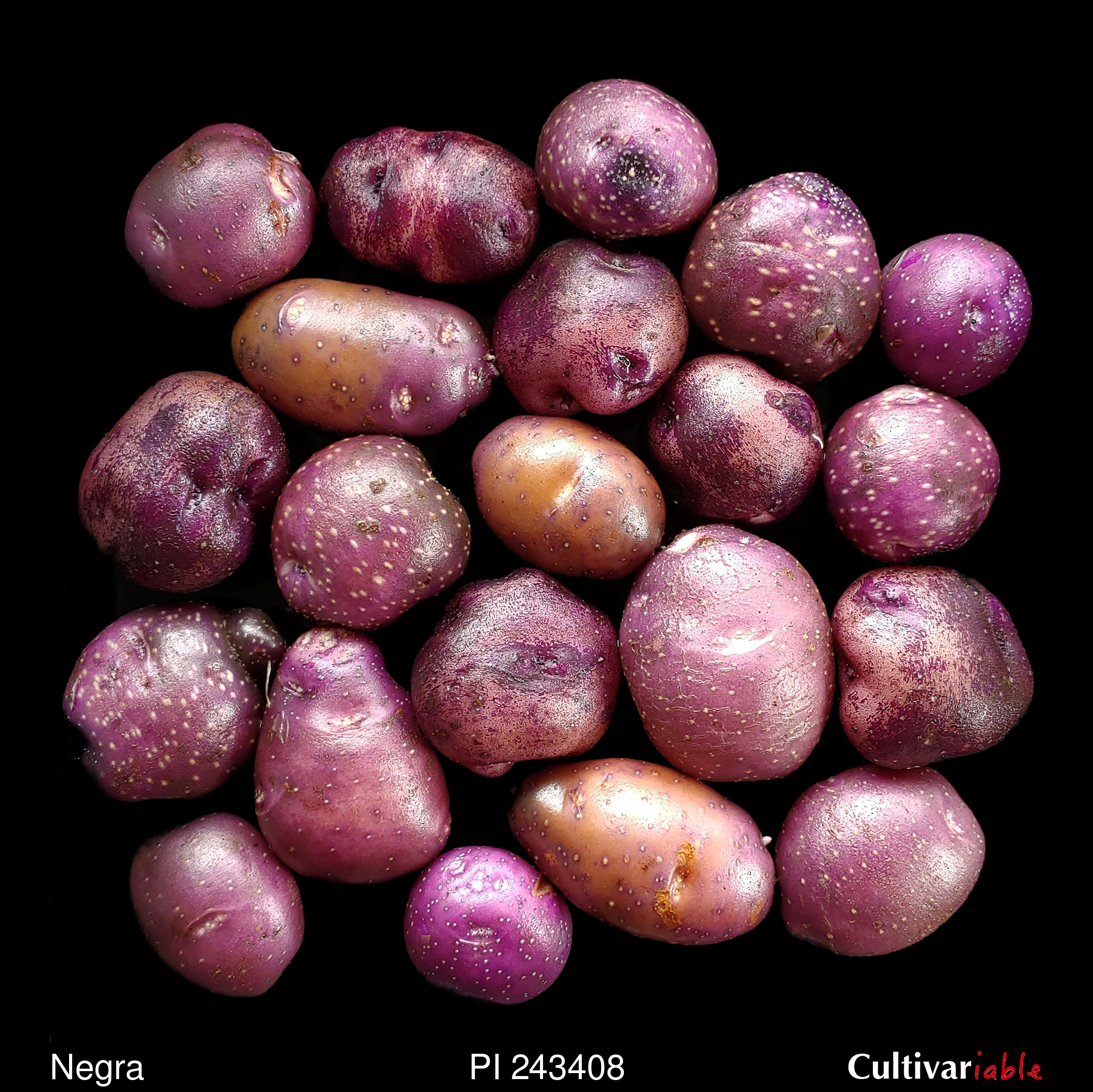 TPS. Fast germinator, 6+ days. High germination. High survival to transplant. Round, elliptic, obovate. Blues, mostly with white flesh. Short to long stolons. High yields. Late season but mostly long day.