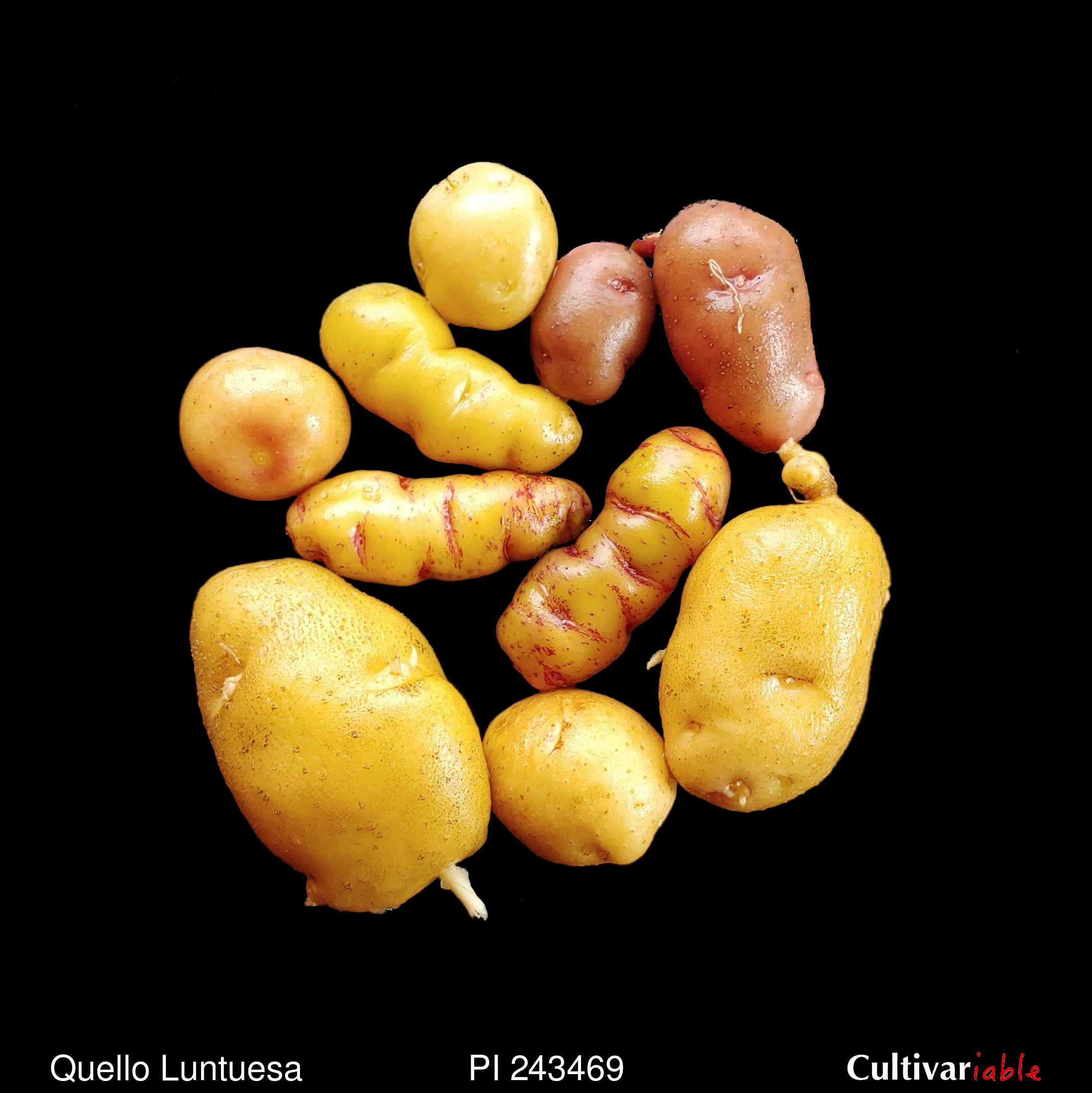TPS. Normal germinator, 7+ days. Intermediate germination. Elliptic to elongate. Yellows and reds, some with moderately deep eyes. Mostly yellow flesh. Mostly short day, but a few with earlier tuberization. Medium to long stolons.