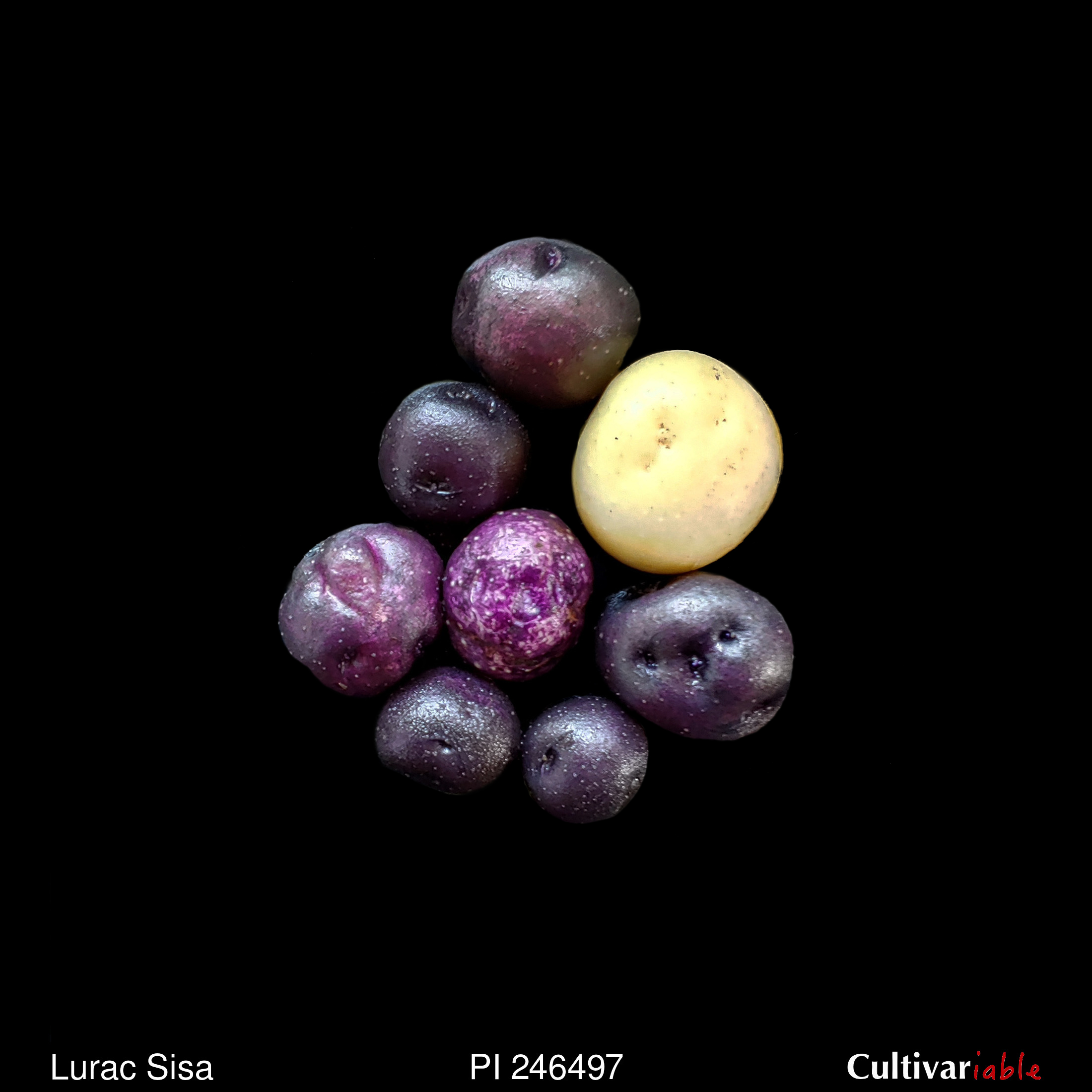 TPS. Round to elliptic. Blues and a few whites. White flesh. Stolons short to mid. Late season and mostly short day.