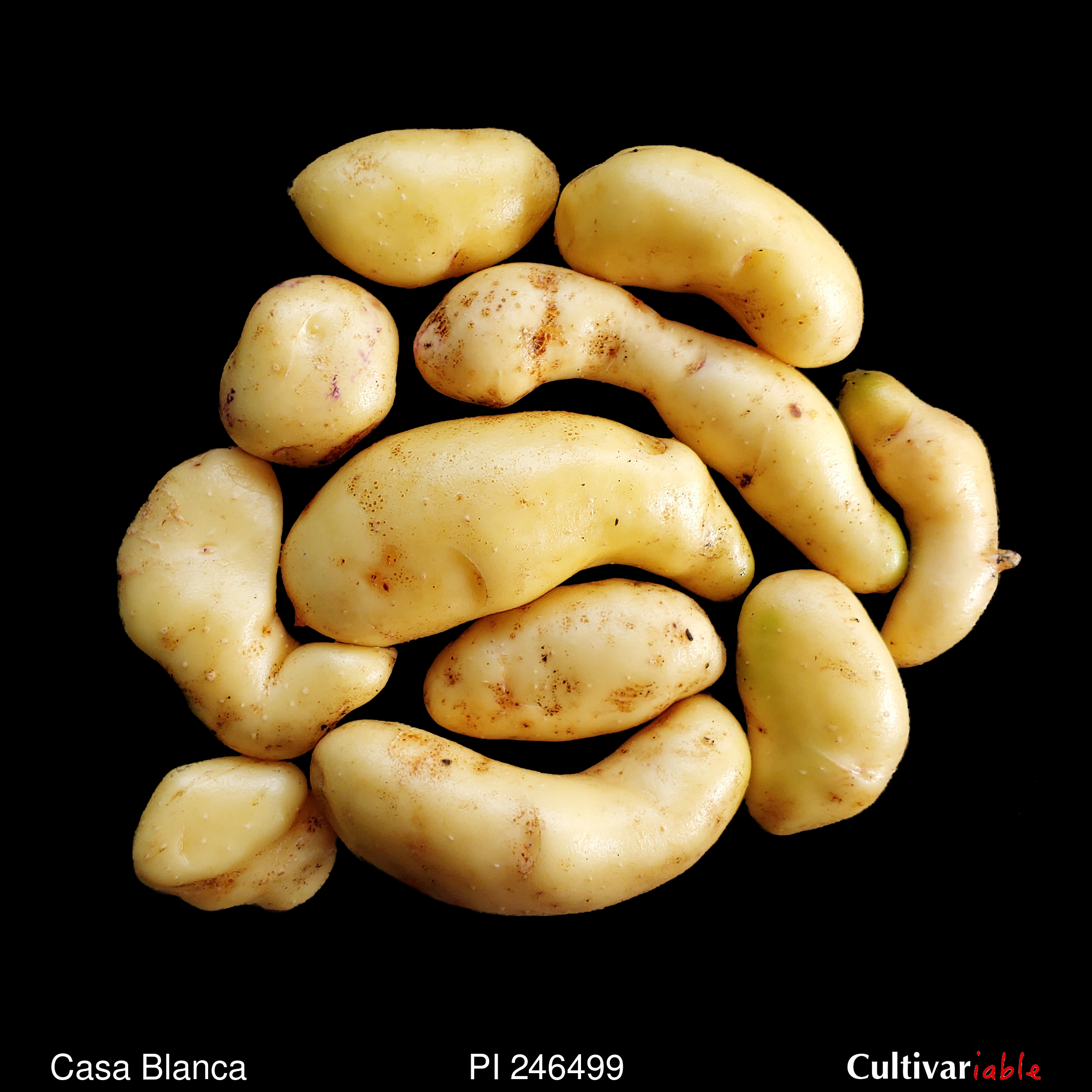 TPS. Elliptic to reniform. Whites and light yellows with similar flesh color. Short stolons. Mid to late season. Mostly long day.