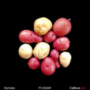 TPS. Round to elliptic. Reds, whites, and light yellows. All with white flesh. Short to mid stolons. Late season, mostly short day.