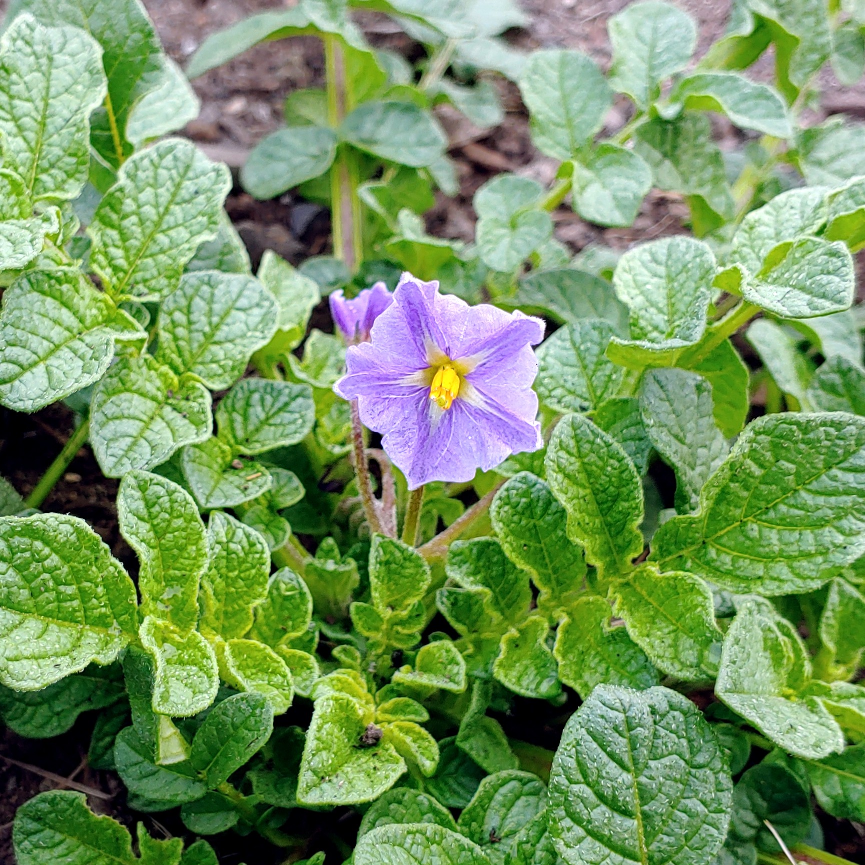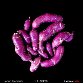 Clone. Elongate tubers, purple with white eyes and white flesh. Small plants with abundant purple flowers. All purpose texture. Somewhat bitter with an unpleasant aftertaste. Obligate short day tuberizer. Heavy flowering. No berries observed.