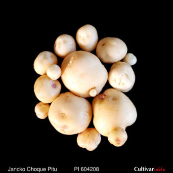 Clone. Large plants. Short to mid stolons. Low tuber count. Heavy flowering and berrying. Small berries with relatively low seed counts.