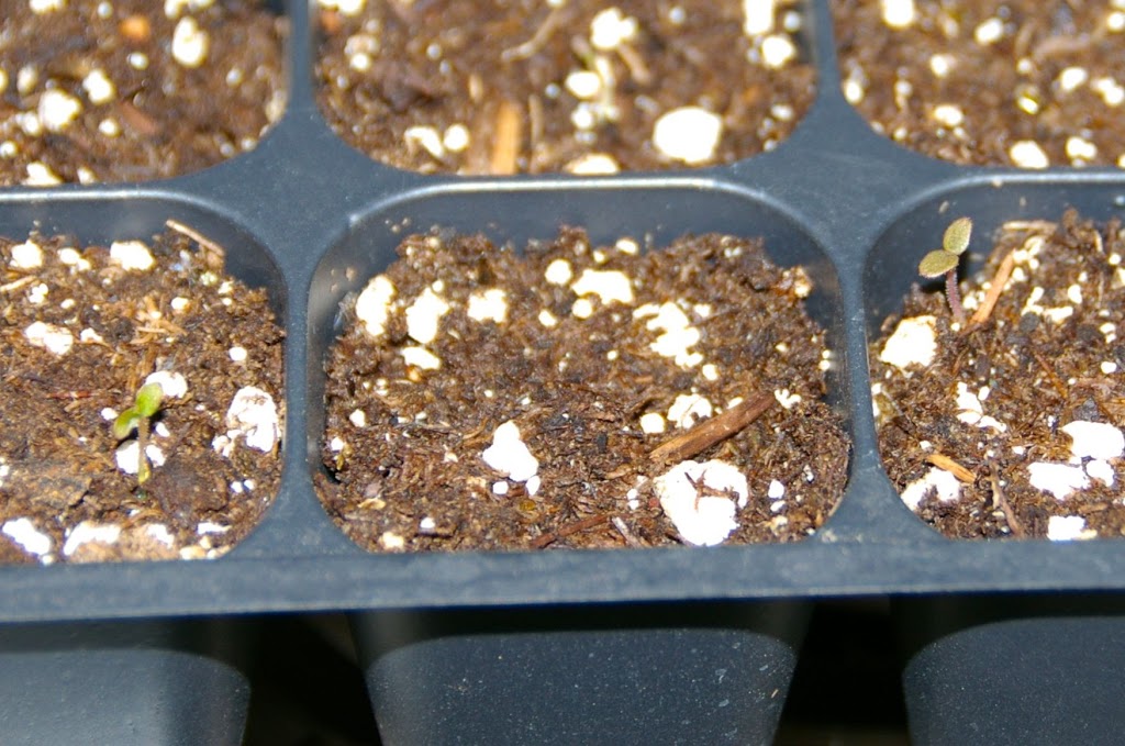 I mist the seed trays with water twice daily, keep them on a heat mat set at 70 degrees, and light them 24 hours per day with a four bulb fluorescent fixture three inches above the seed trays. I can’t say if this is the best method for raising oca seedlings, but it is at least somewhat successful so far.