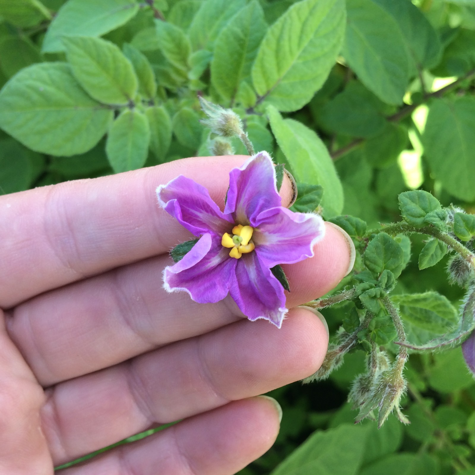 I have grown Ozette since 2007 with the goal of using it for breeding.  We live on the central coast of Washington about 60 miles from Lake Ozette, so Ozette is as close as we get to a local potato.  I figured that 200 years of adaptation to this climate might make it a first rate choice for breeding.  Unfortunately, it has many of the problematic features that plague the potato breeder: it is a very reluctant flowerer, poor at holding any flowers that do bloom, and to top it off, it is male sterile.  The first hurdle was the biggest.  Most years, Ozette does not flower here. About every three years, I would get a flower or two.  I would hand pollinate those flowers and, a few days later, they would drop from the plant.