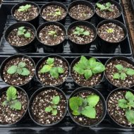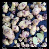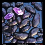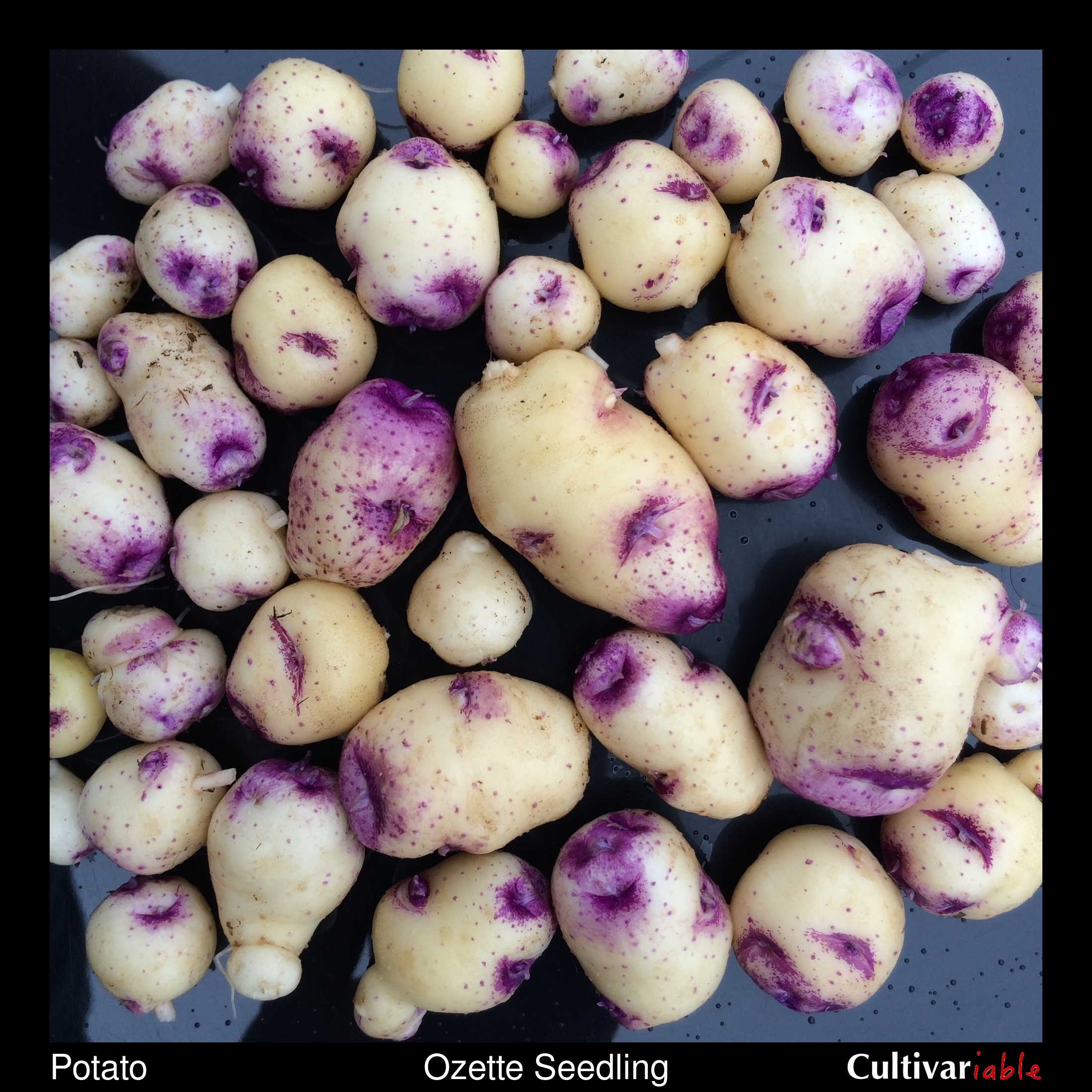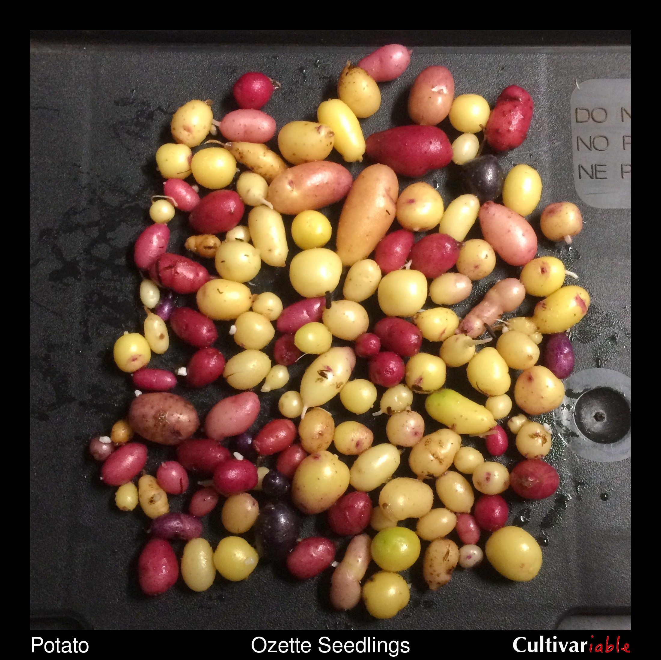 In 2016, I got half a dozen flowers at a time of year when I had a lot of other varieties in flower.  I pollinated the Ozette flowers with bulk pollen from many varieties with blue or red flesh and I finally got a break: three of those flowers held on the plants and formed berries.  Only two of the berries ultimately contained seeds, but I ended up with 176 seeds in total.  I put 40 seeds in the freezer as insurance against incompetence (I’m growing those reserved seeds this year) and sowed the rest, ultimately getting tubers from 112 seedlings.  I grew those seedlings in pots to produce minitubers and then planted the minitubers out in the field the next year for a full evaluation.