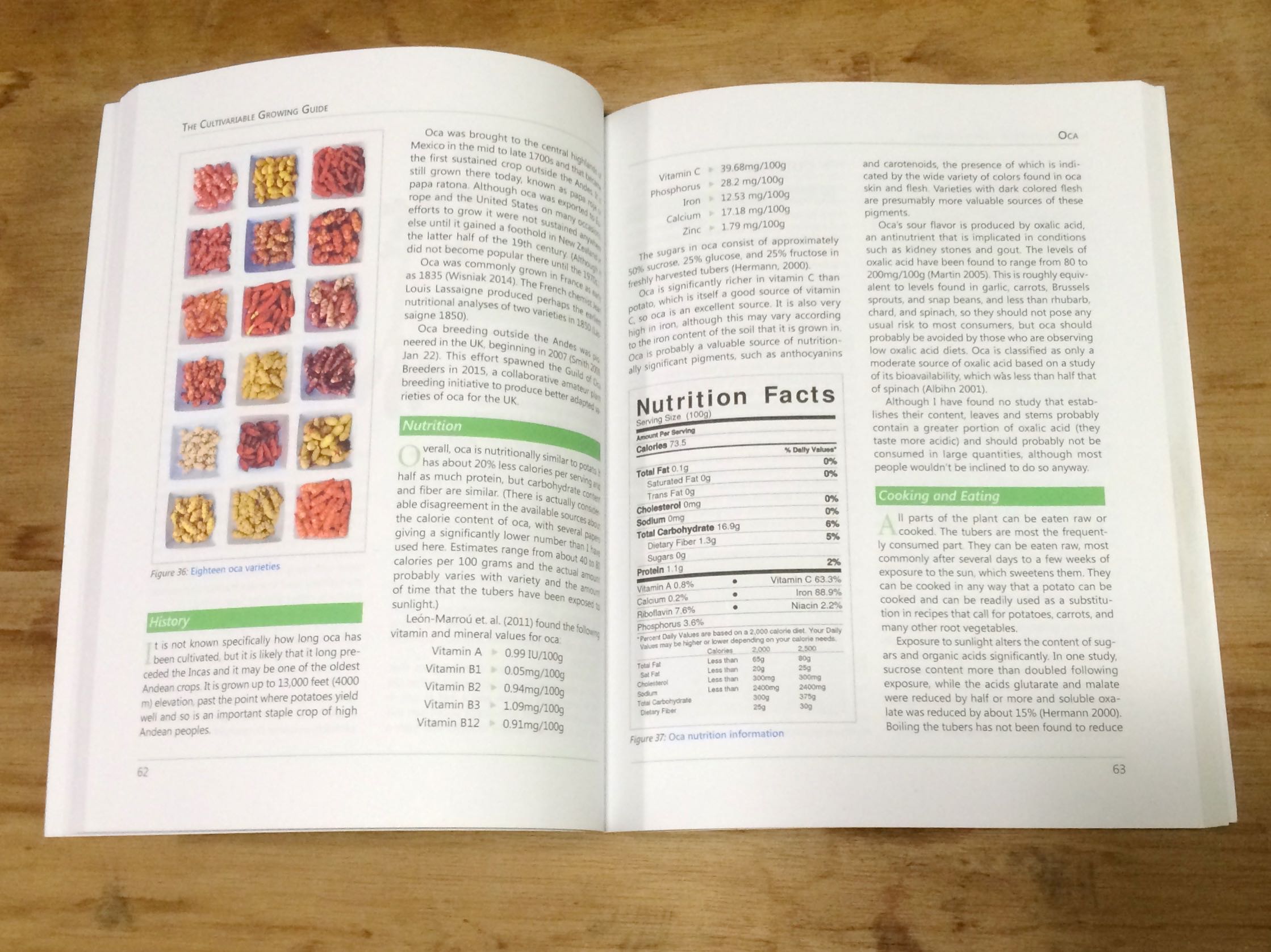 The first half of the book discusses root and tuber crops from the Andes, often called the Lost Crops of the Incas. These ten plants, achira (Canna edulis), ahipa (Pachyrhizus ahipa), arracacha (Aracacia xanthorrhiza), maca (Lepidium meyenii), mashua (Tropaeolum tuberosum), mauka (Mirabilis expansa), oca (Oxalis tuberosa), potato (Solanum spp.), ulluco (Ullucus tuberosus), and yacon (Smallanthus sonchifolius), are diverse in form, color, and flavor and include some of the most beautiful vegetables ever to grace a plate. While potato may seem like an odd inclusion, instructions are provided for growing potatoes from true potato seed (TPS), a new experience for most vegetable gardeners, but one that is growing in popularity.