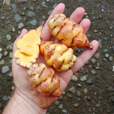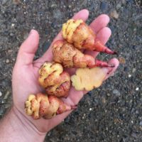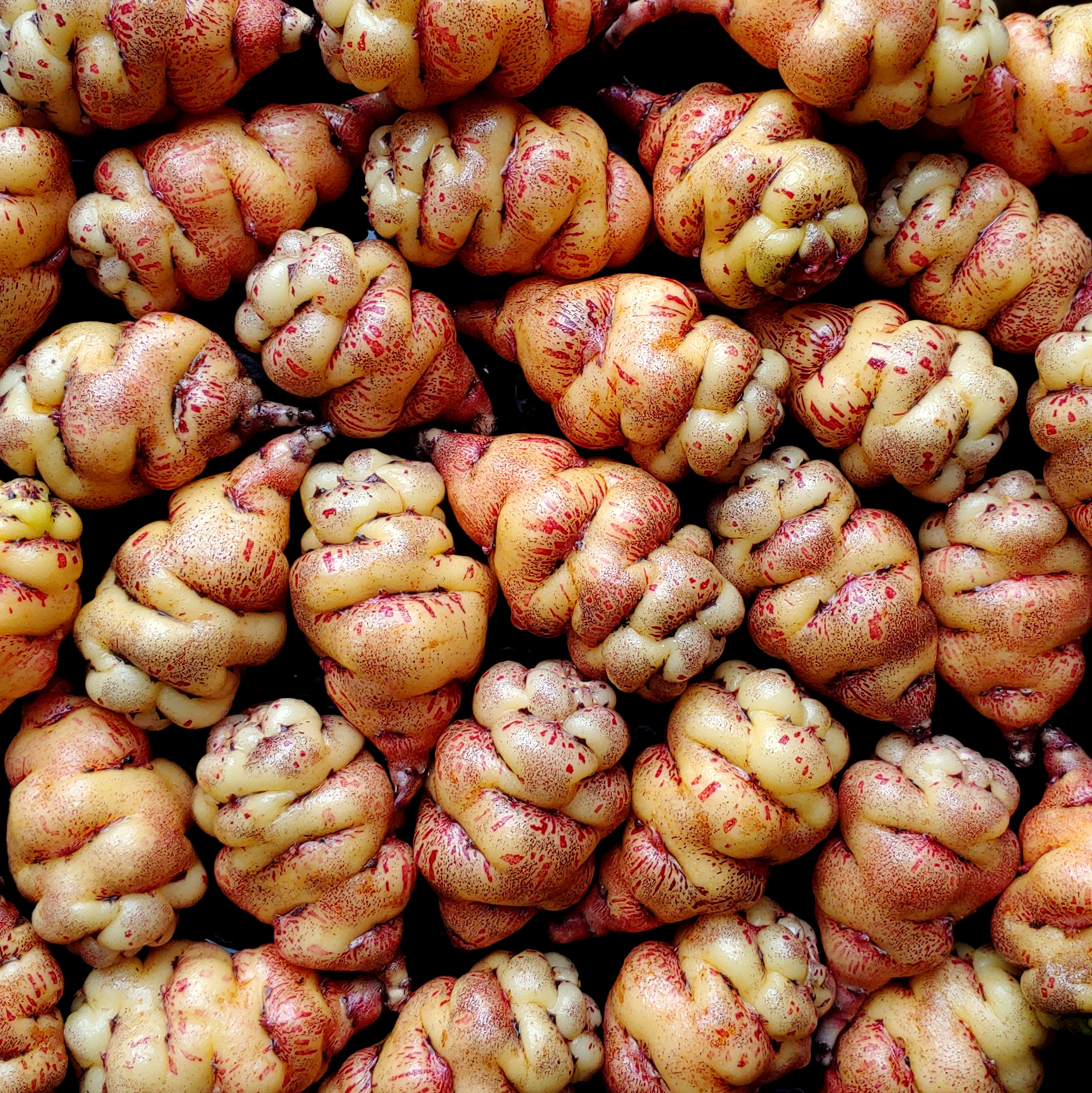 Suqualus is a Cultivariable original variety, introduced in 2018. It is progeny out of Ken Aslet and I anticipate that it will be more popular as an ornamental than an edible, much like its parent. I think the tubers are prettier than those of Ken Aslet, but otherwise the two varieties are quite similar.