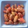 Pascou is reportedly a Peruvian variety. It is also sold under the names ‘Frank’s Bicolor’, ‘Monster’, ‘OE Durazno’, and probably others. I do not recommend growing this variety if you obtained it from us before 2019, as it was carrying a virus. Tubers offered now have been cleaned and tested.