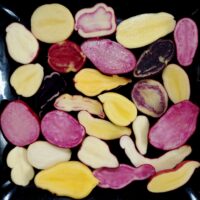 The TPS of Calawah has been collected between 2017 and 2019 and was open pollinated. I suspect that it is mostly self pollinated, but neighbors were Andean diploids and other S. curtilobum potatoes, so there could be some unexpected diversity. I have grown quite a few plants from Calawah TPS and found that they are quite diverse. About half of the plants will be short day, not tuberizing until fall. The other half are effectively day neutral and will tuberize at any time of year. The tubers are mostly reds and blues, with the occasional white. Bicolors are pretty common. Shapes are mostly oval to ovate, often laterally compressed. There are about equal numbers of plants with long and short stolons. You will get some varieties that are a little bitter from these seeds (maybe 10%) and I recommend that you discard those.