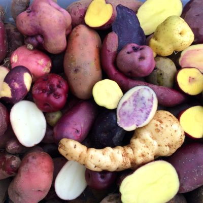 This mix contains seeds collected from all the domesticated potatoes that I grow. Unlike other mixes, this one also contains seeds from current year seedlings that have not been through any selection. There is a lot more genetic diversity in this mix, but you will probably find less keepers overall, so there is a trade-off. You are pretty much guaranteed to get plants with stolons four feet long, plants that produce no tubers, plants that produce 10 times the volume of berries as tubers, and bitter potatoes that you shouldn’t eat. You will, of course, also get plenty of good potatoes and possibly even plants that have exceptional pest or disease resistance or unusual climate tolerance. If my other mixes are just too tame for you and you want to see the really weird stuff, you have arrived at your destination. This mix will change much more from year to year than the other mixes, but you would probably have to grow 10,000 seeds or more to really notice. Typically this mix runs about 60% tetraploid and 40% diploid. The mix contains only seed from domesticated potatoes, although there may be some that have hybridized with wild species.