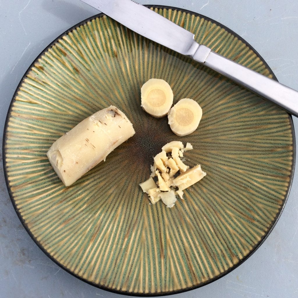 The root is pretty dense and slightly fibrous. It is not fibrous to the extent that it is stringy, but just enough that you can tell that there is more than one texture when you chew it. I don’t find the texture unpleasant at all.