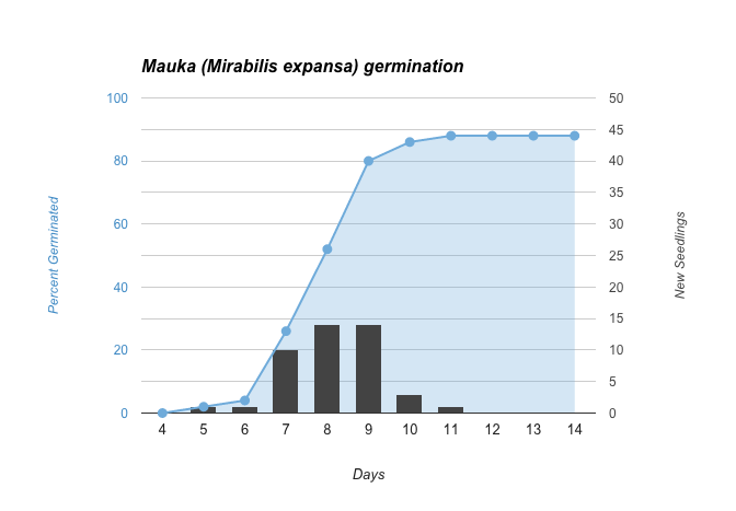 This has been a big learning year for us with mauka (Mirabilis expansa). We’ve started to work out the details of seed production and have finally been able to produce enough seed to grow larger numbers of seedlings. Our initial packets of seed this year were labeled at 90% germination, which is very good, but […]