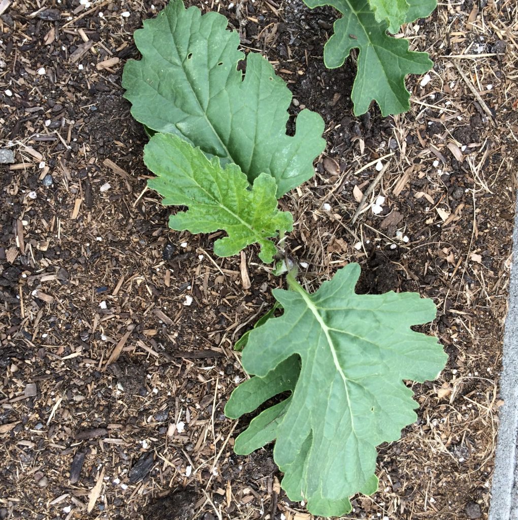 | These seedlings are similar to the parents, with large, smooth, minimally lobed, and thicker leaves. | ||