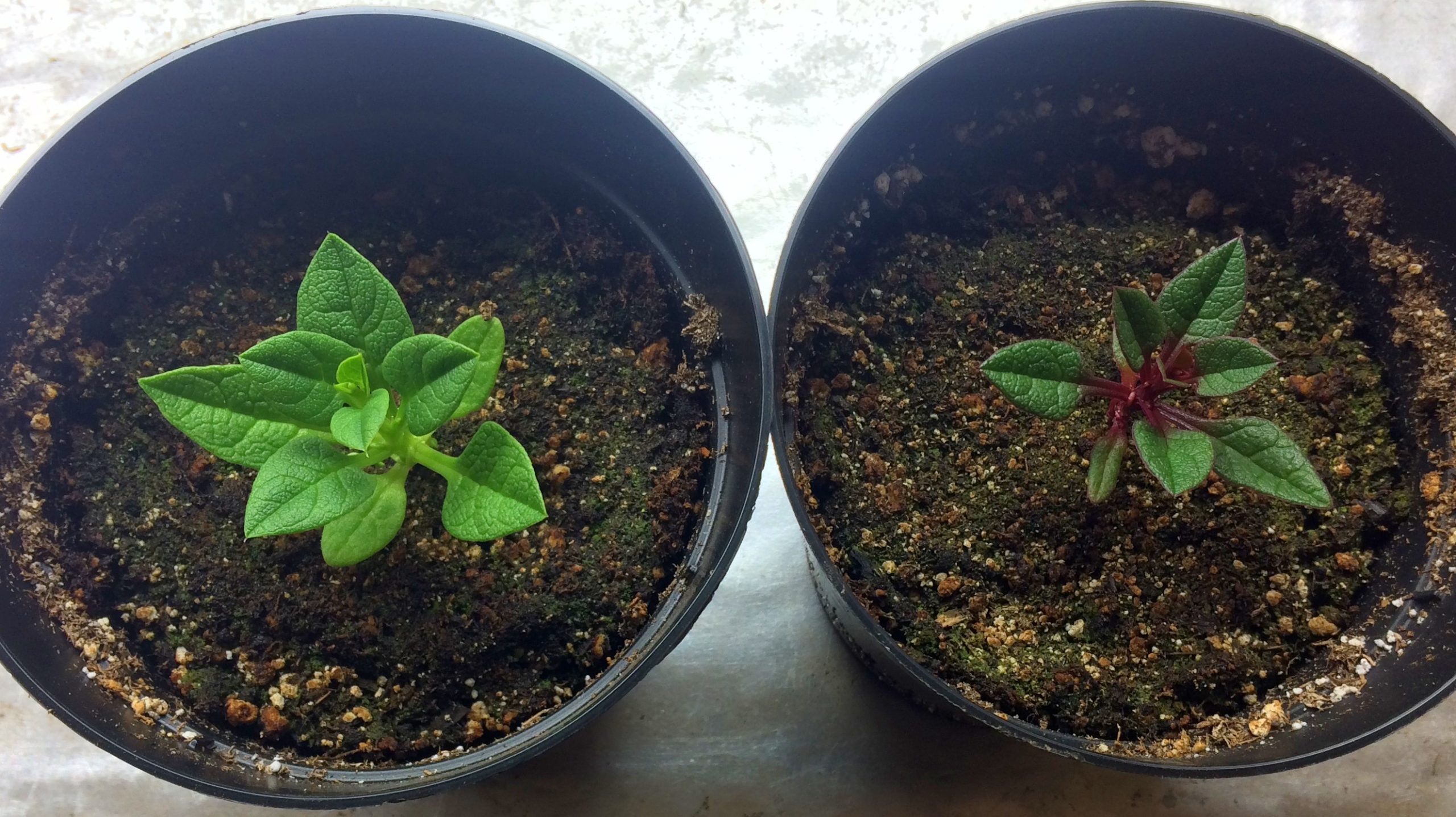 Great! The beet system easily accounts for the production of white progeny from colored parents. We can’t declare this a true fit without a lot more work, but this is just a sanity test to see if our results look remotely close. So, here are the parent and progeny phenotypes for all the seedlings that have survived long enough to form tubers: