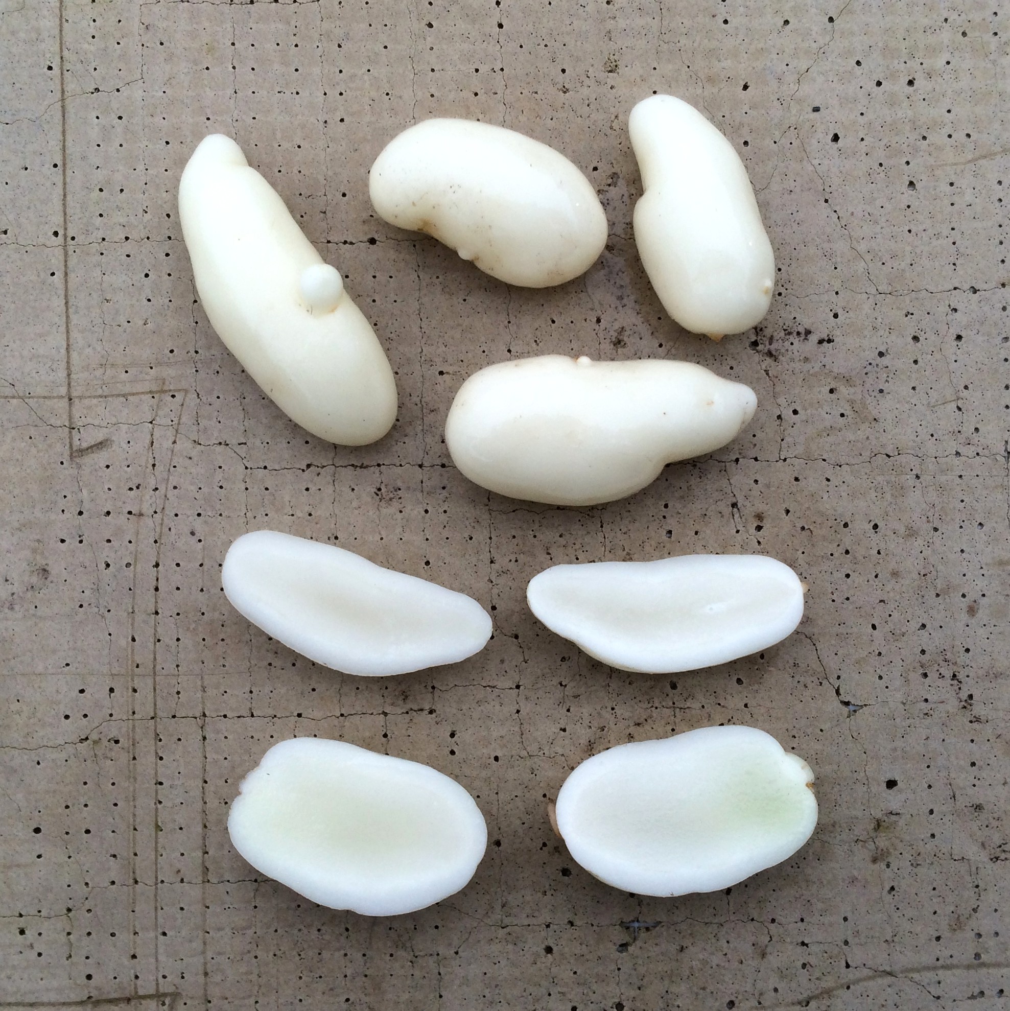 Flesh color also does not match with beets, as skin color does, so there must at least be additional factors involved in ulluco flesh color. Many ulluco varieties have colored skin and white flesh, a combination that I don’t think exists in beets. (Are there white fodder or sugar beets with colored skin? If you know the answer, please leave a comment.) Many beets have red flesh, but I don’t think that there are any ullucos with red flesh. The only ulluco flesh colors that I have seen are white, yellow, orange, and possibly green.