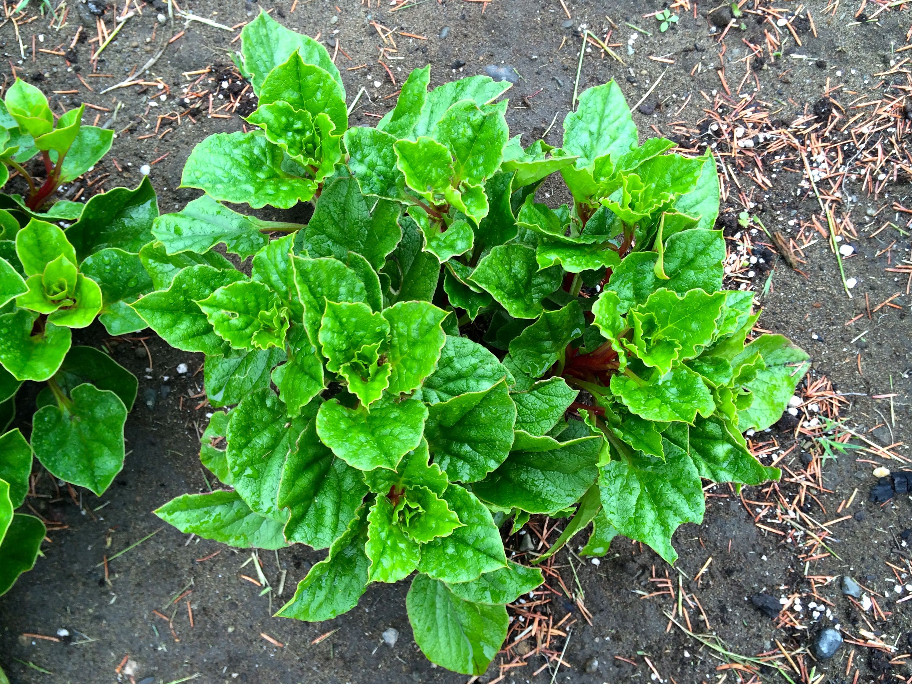 This is the second seedling, born on March 14th. It has red stems and an interesting wrinkled leaf margin. I can’t clearly associate these traits with any of the parent varieties, although the only parent variety with red stems that set many seeds was Chugua Roja.